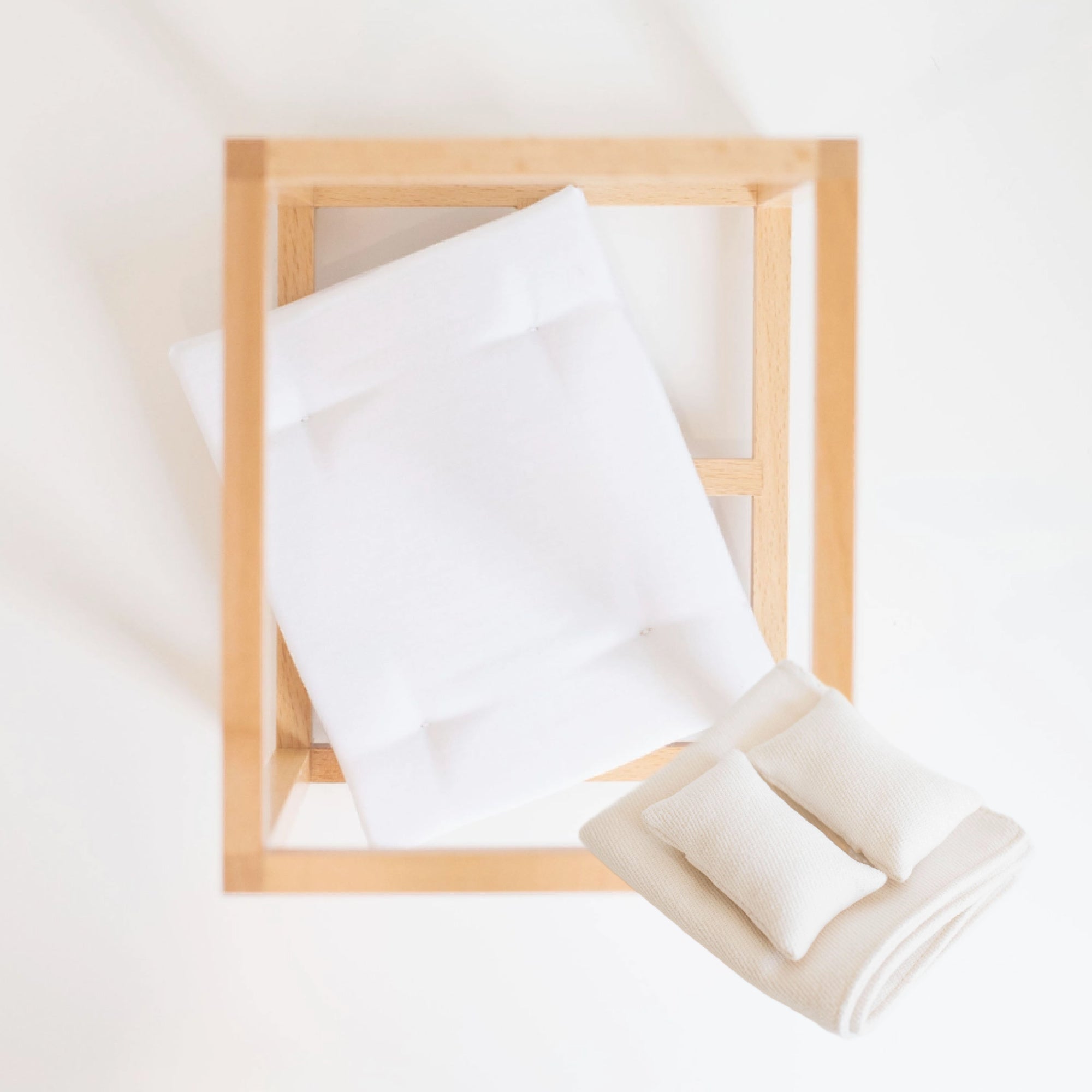 Crafted with meticulous attention to detail and designed to provide comfort and style, this bedding set will elevate your miniature sleep scenes to new heights. Includes: 1 blanket & 2 rectangle pillows