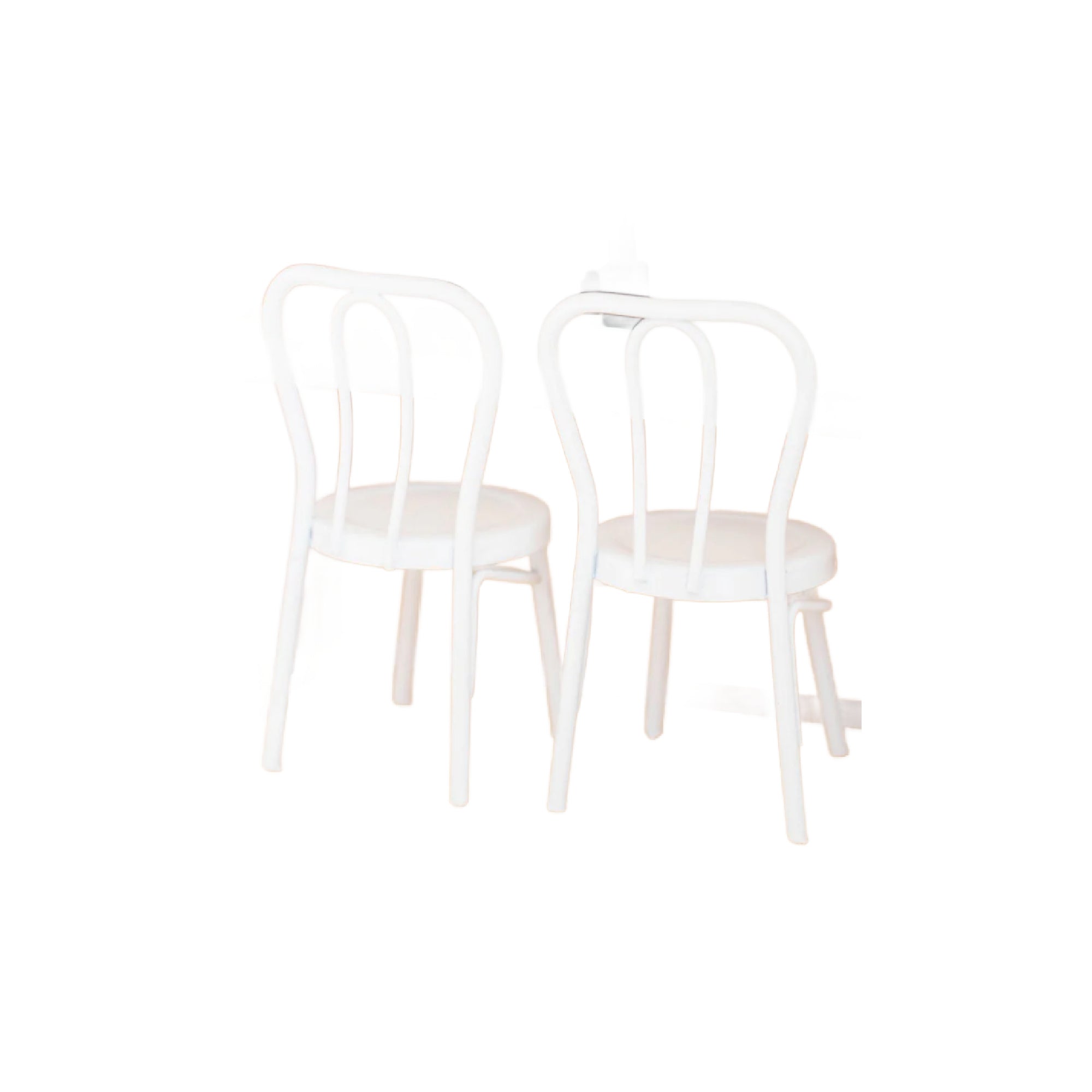 These dollhouse white metal bistro chairs are intricately designed and timeless. Pair them with any table, or bring a look of elegance to our classic dining table. The sturdy metal construction ensures durability, making them a lasting addition to your miniature collection.