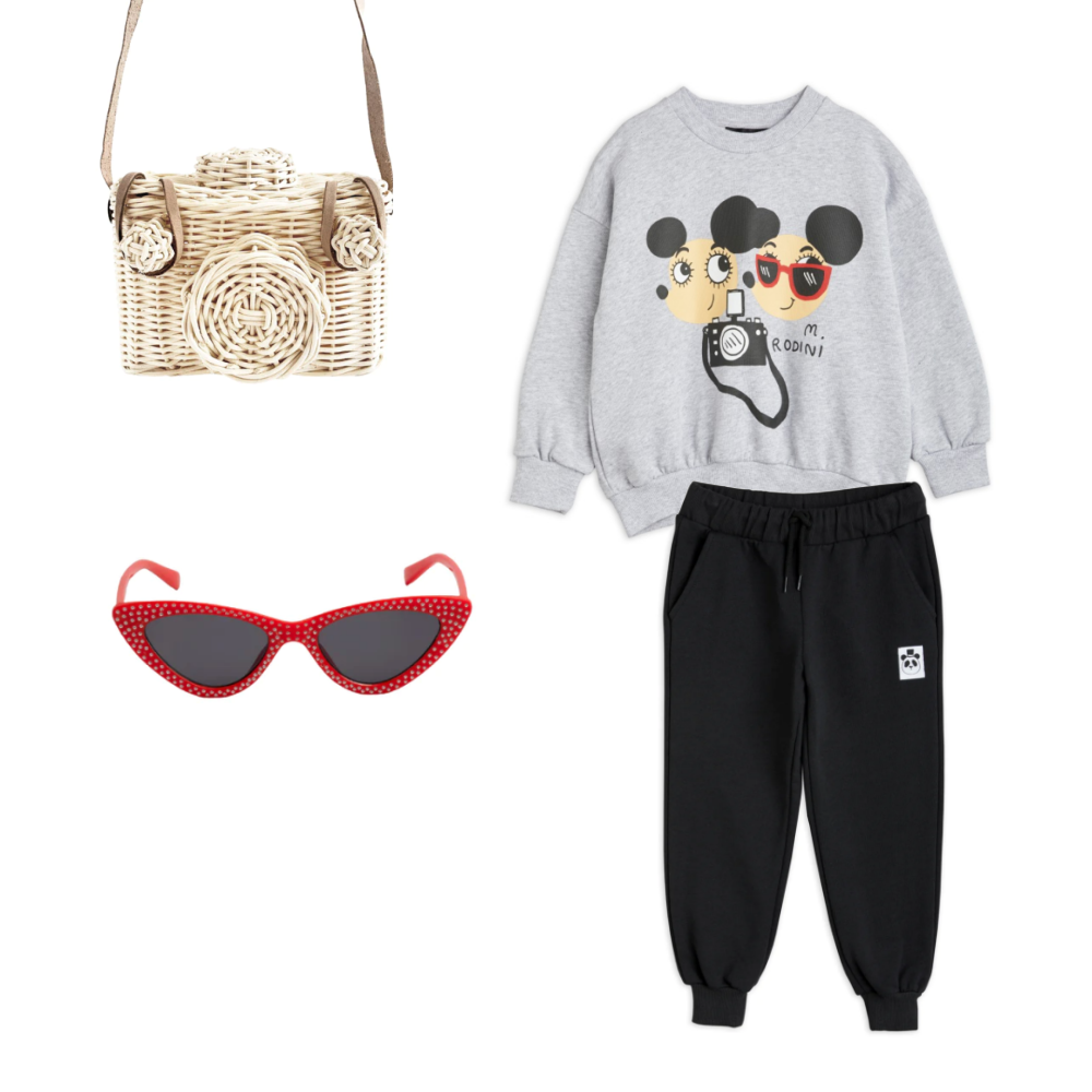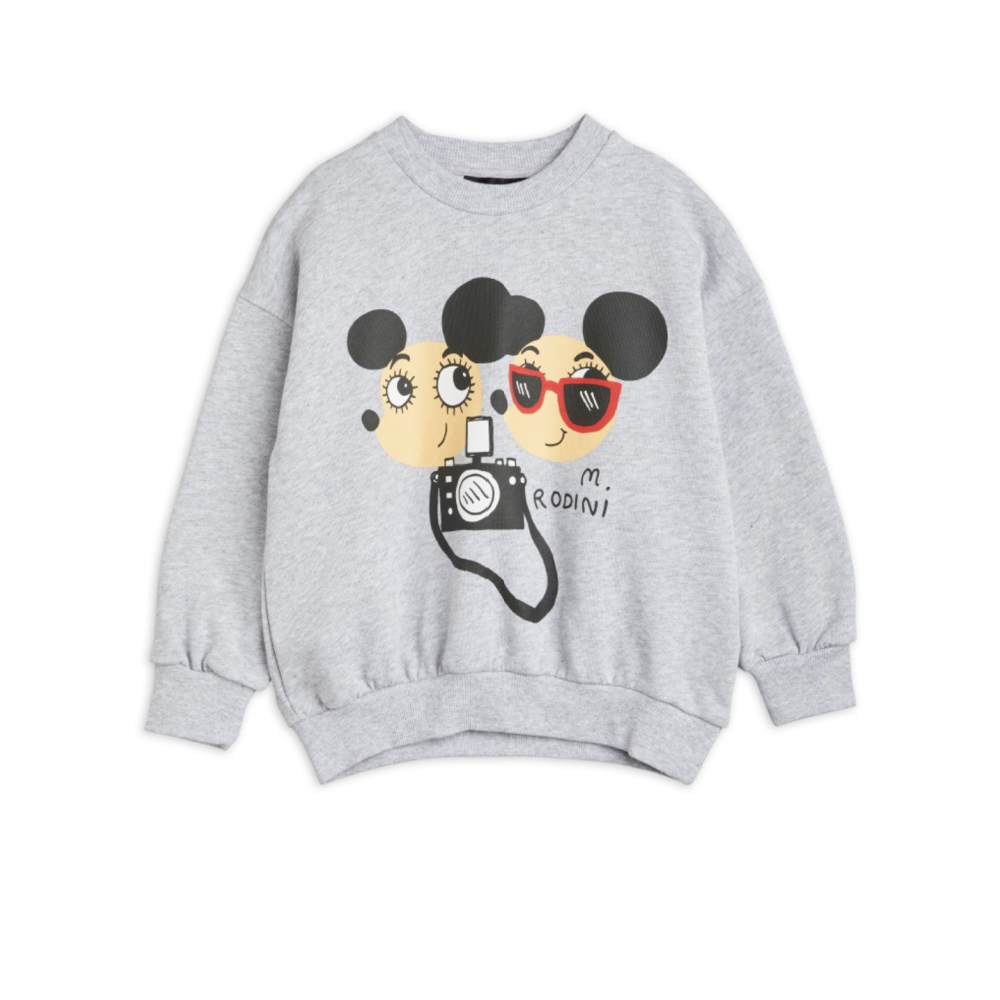 Sweatshirt in grey melange featuring a large Ritzratz print in the front, designed with dropped shoulders for a relaxed fit and features a ribbed neck, sleeve ends and bottom hem.