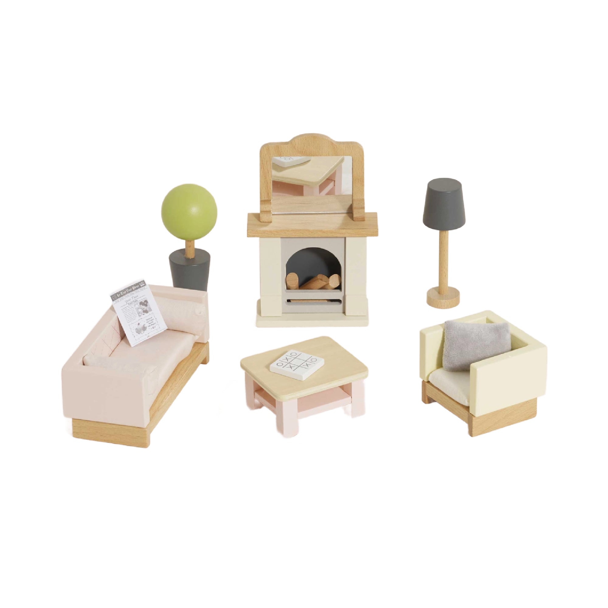 Sit back and relax with this stylish miniature living room set, just the ticket to bring the wow factor to any child’s dream dolls house setup. Complete with beautiful accessories, including 2 squishy sofas - the perfect spot for reading the newspaper or playing family board games. And no living room would be complete without a coffee table, a cozy rug and a lamp. There’s even a log fireplace and mirror above to complete the look.