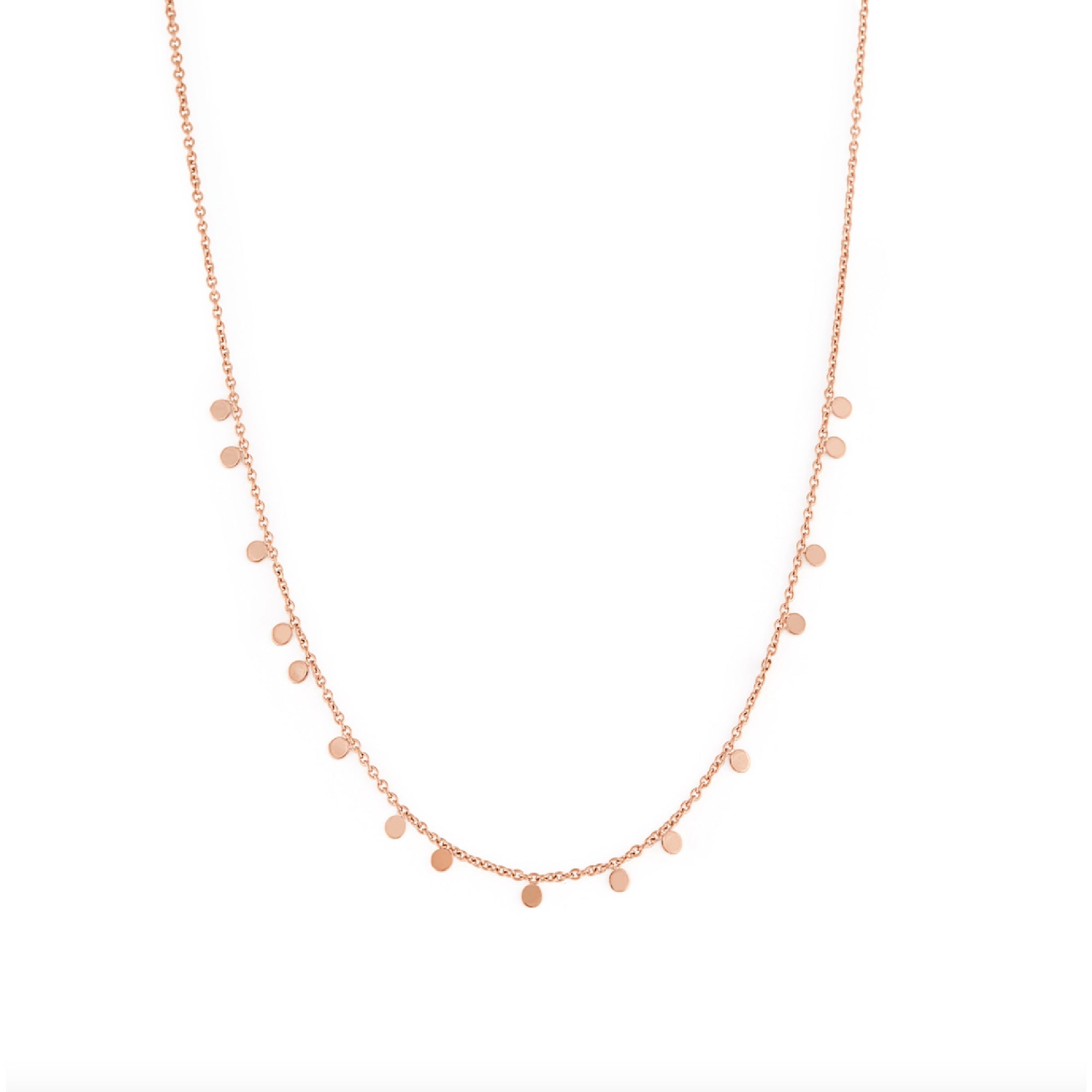 A beautiful rose gold coin necklace that is great for layering! Includes a beautiful matte triangular gift box.