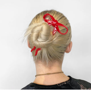 A sweet, unique bow-shaped hairpin to secure your bun. Perfect for all hair types and textures. Made from high-quality acetate; a durable, plant-based bio-plastic.