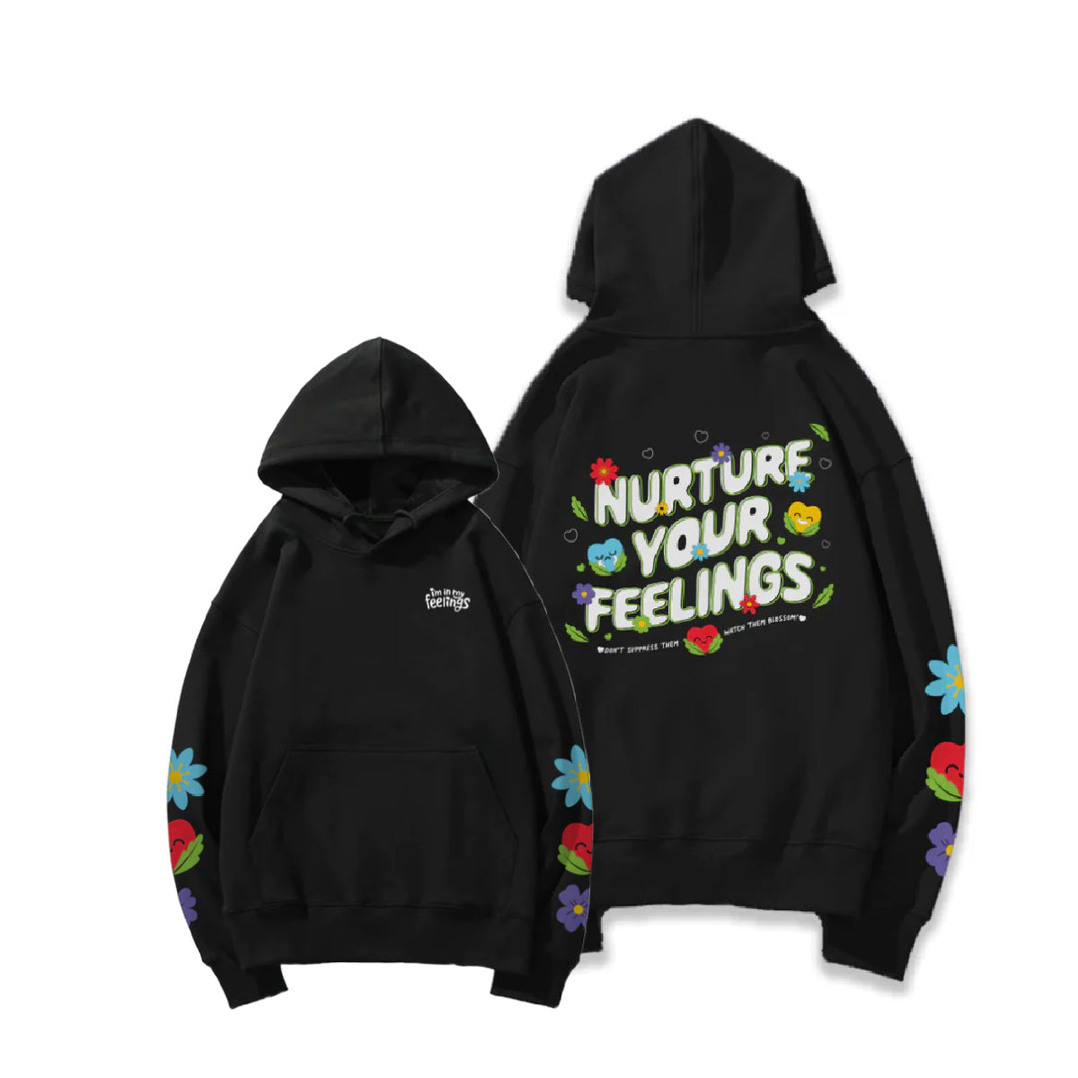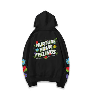 The Adults "Nurture Your Feelings" Hoodie - is the perfect addition to your wardrobe and is crafted with luxe velour lining and stretch material, with a drop shoulder cut that runs slightly shorter. Unisex style for men and women