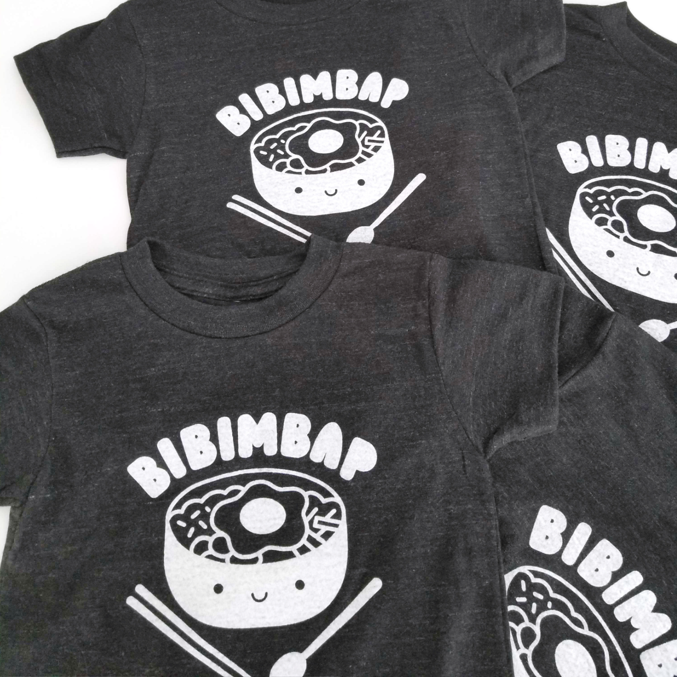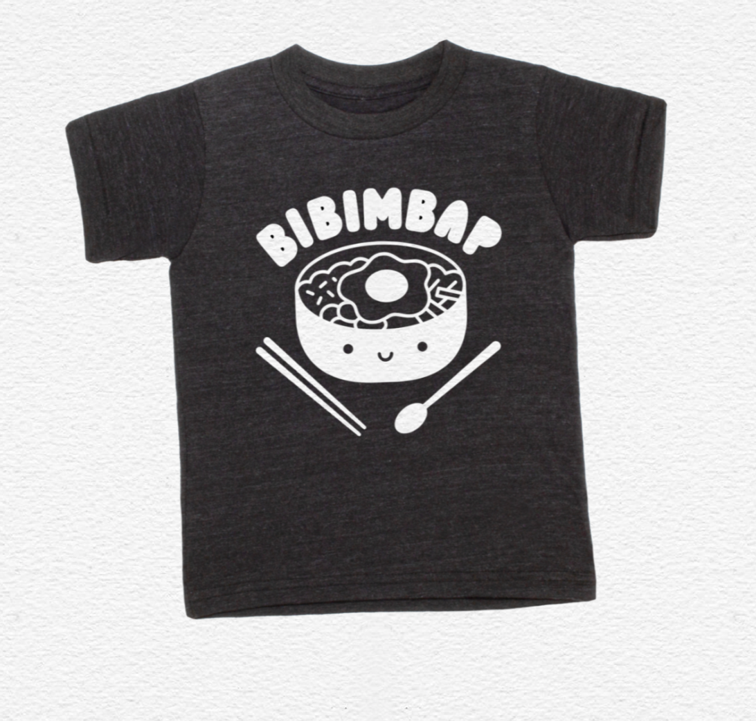 This adorable Bibimbap tee features a white screen print in Kawaii style on a charcoal short sleeve tee exclusively for DLK. Adorable just like our kids! We recommend sizing up for a looser fit!