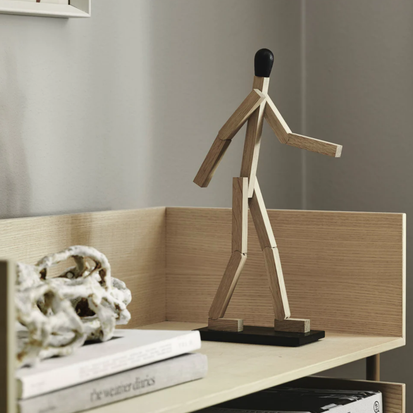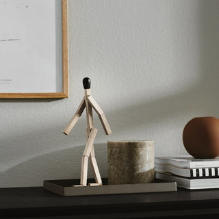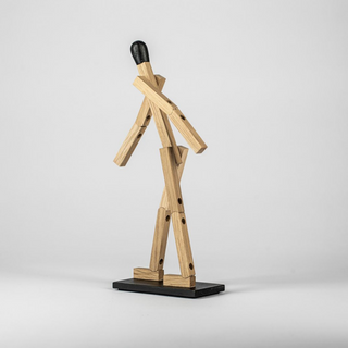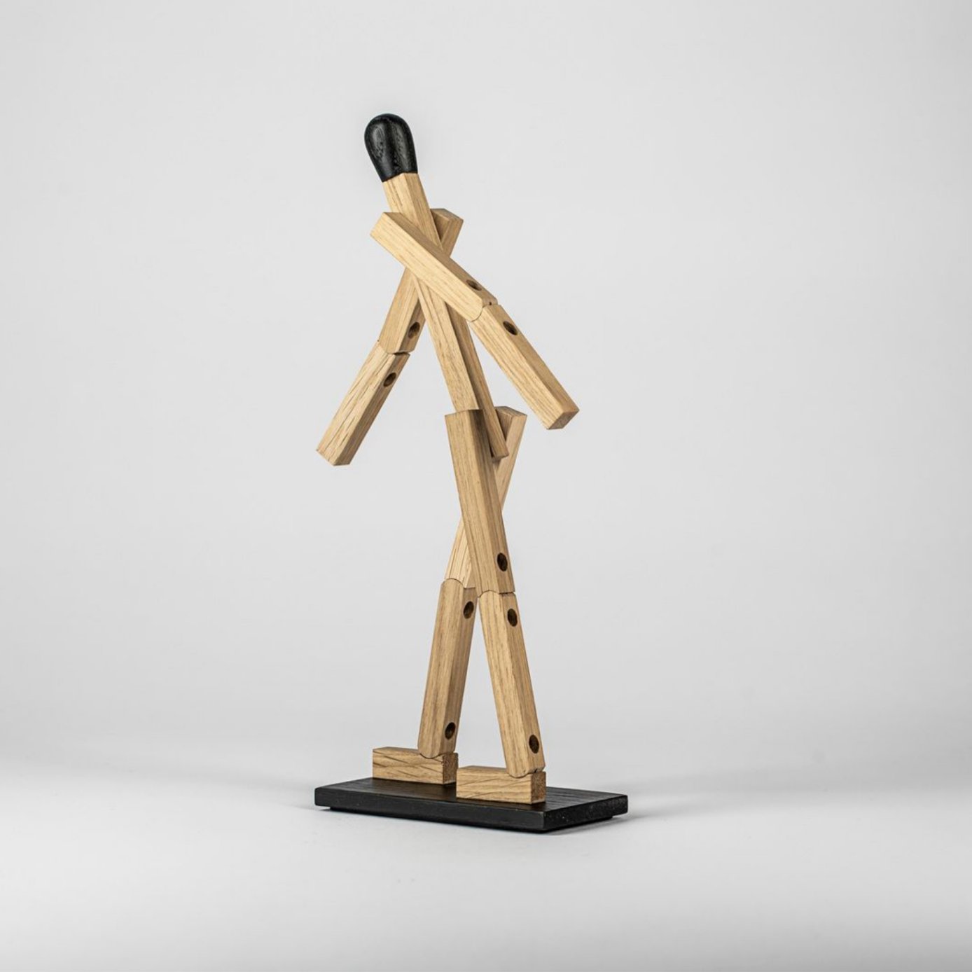 By the means of a few straight lines, the imagination sparked drawings of everything from policemen and firefighters to scary monsters. The match man has been immortalized in oak. A functional figure with moveable arms and legs and magnets in the feet to keep balance – a true reminiscence of the joys of simplified living.