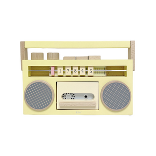 Turn back time to the good old days with this super rad wooden tape recorder, a one-of-a-kind toy that combines the charm of traditional wood with modern electronic fun. The perfect "remix" of old-school and new-cool, this tape recorder actually LIVE RECORDS onto the included wooden cassette tape!