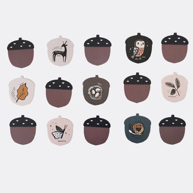 These adorable acorn shaped Memory Game cards are perfect for play and just the right size for little hands. Kids will be entertained by the animal and plant illustrations, designed to encourage conversation and imagination.