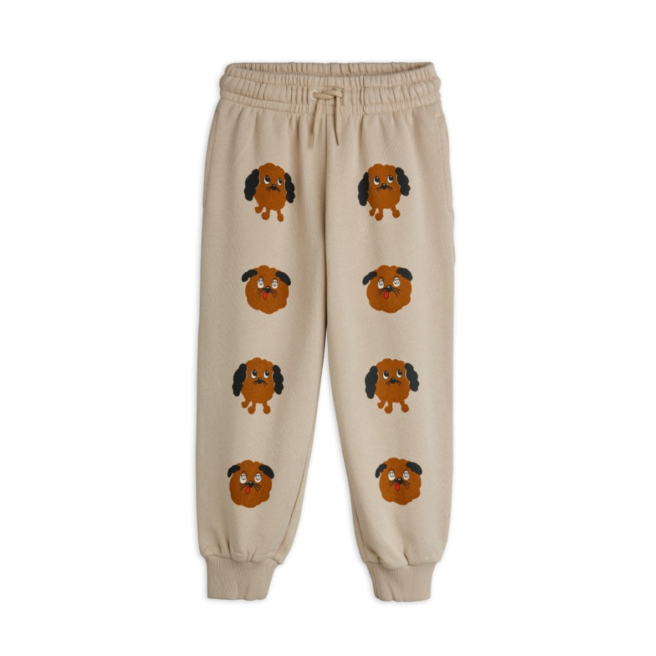 An adorable and comfy sweatpant featuring a elastic waistband, pockets, and all an adorable dog print on the front of the legs.