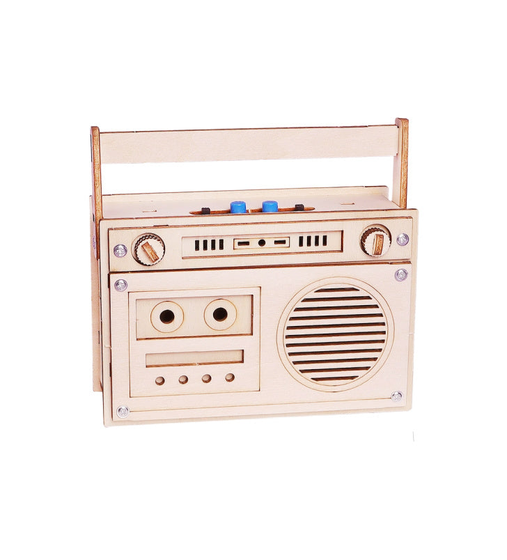 This is so much fun! Build your very own boombox shaped voice recorder that captures up to 60 seconds of audio and plays it back with a looping feature. Perfect for hands-on learning and exploring sound technology! Paint it or leave natural... either way it looks really rad!