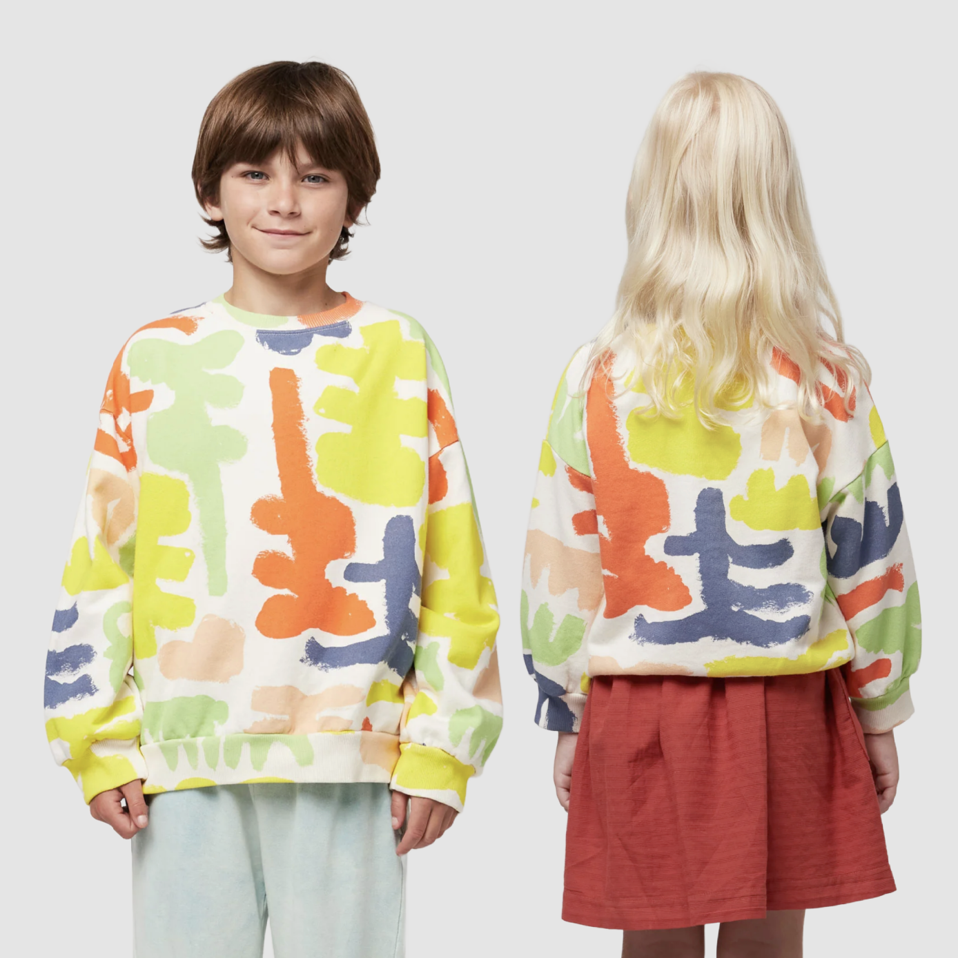 Designed with long sleeves, ribbed cuffs, embroidery, loose fit, ribbed bottom, round neck and fleece.