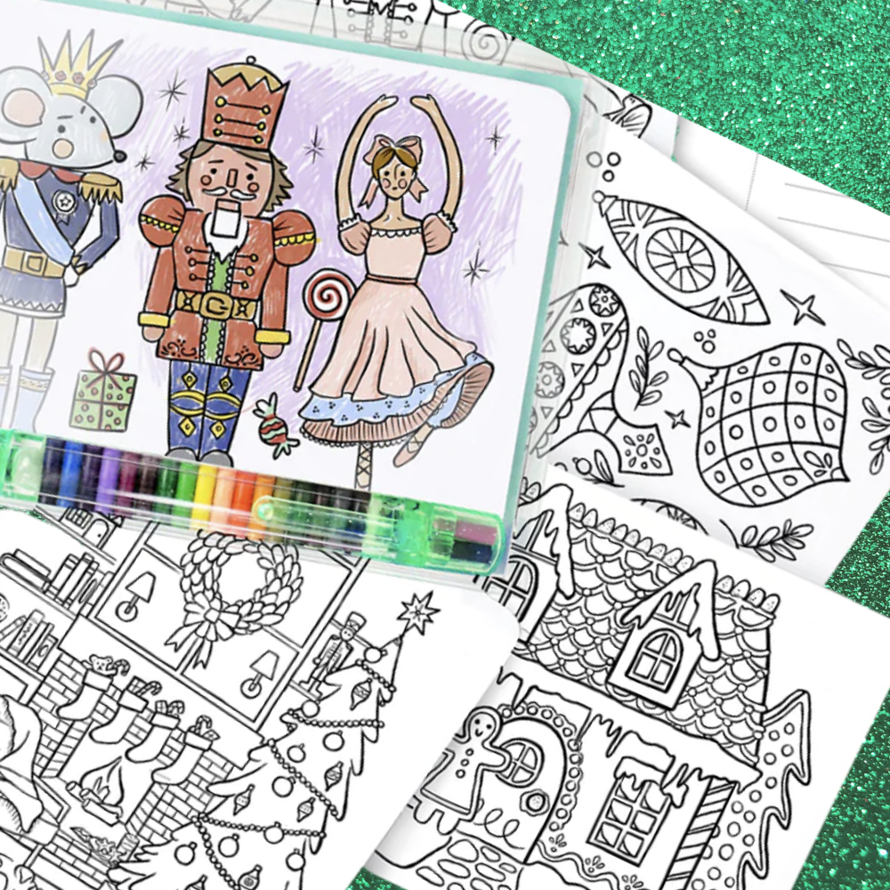Let's bring back the fun of snail mail! This fun set of 12 assorted color-in postcards is a great way to get kids involved in the holiday season! Use your imagination to color in the scene on the front, then add a stamp and drop it in the mail to brighten someone's day! Included are 12 assorted cards (3 each of 4 designs) and one color-changing crayon. Spread some joy and let your creativity run wild!