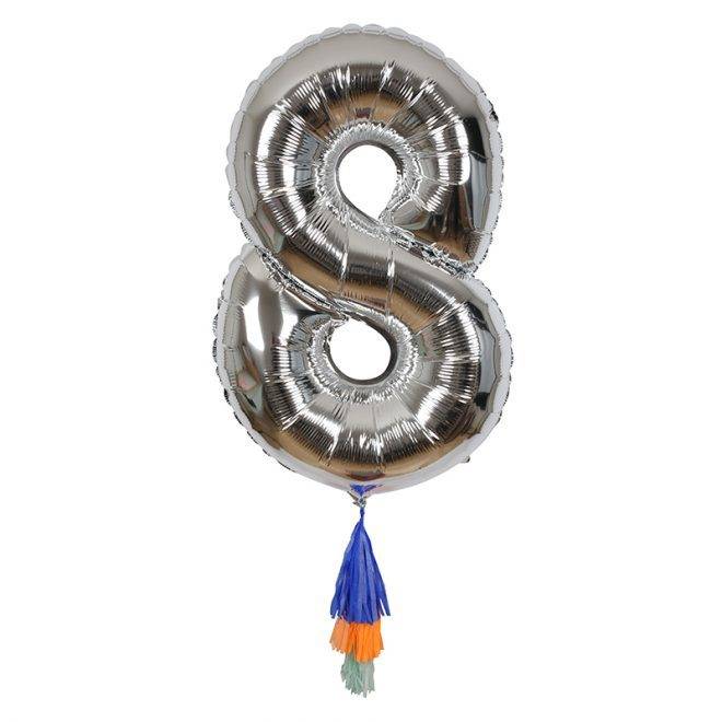 Celebrate the perfect birthday with this huge shiny balloon in the shape of a number. Comes with 3 decorative tissue tassels in different colors.