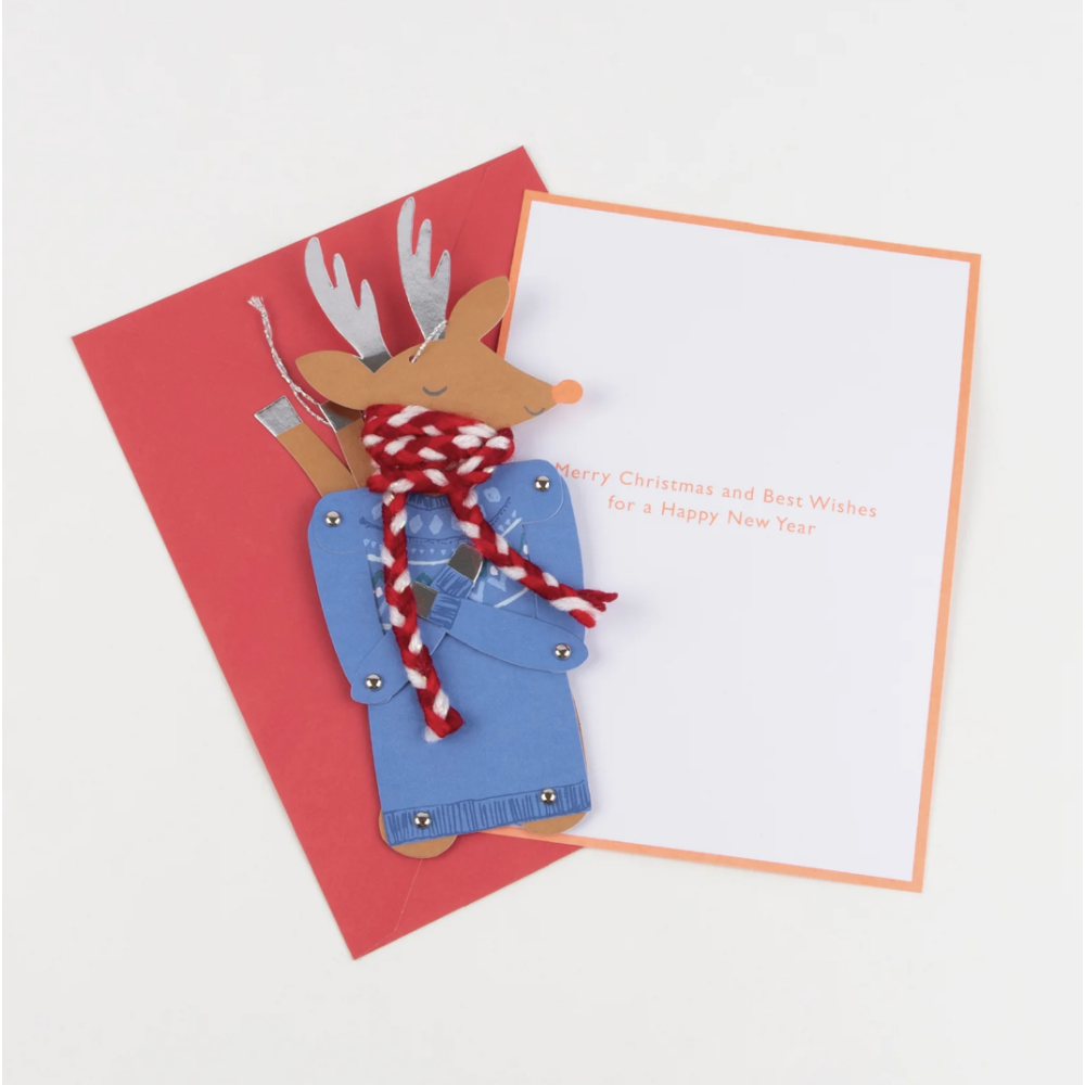 Why send a plain card, when the receiver can open the envelope to reveal a fun dancing reindeer? It's a beautifully designed and crafted Christmas decoration to hang up, guaranteed to make everyone smile.