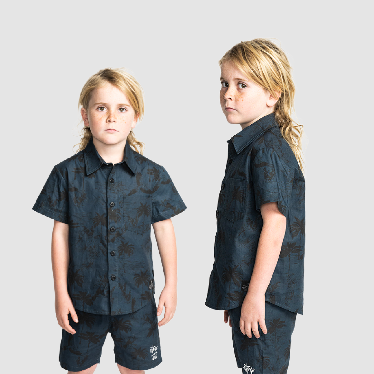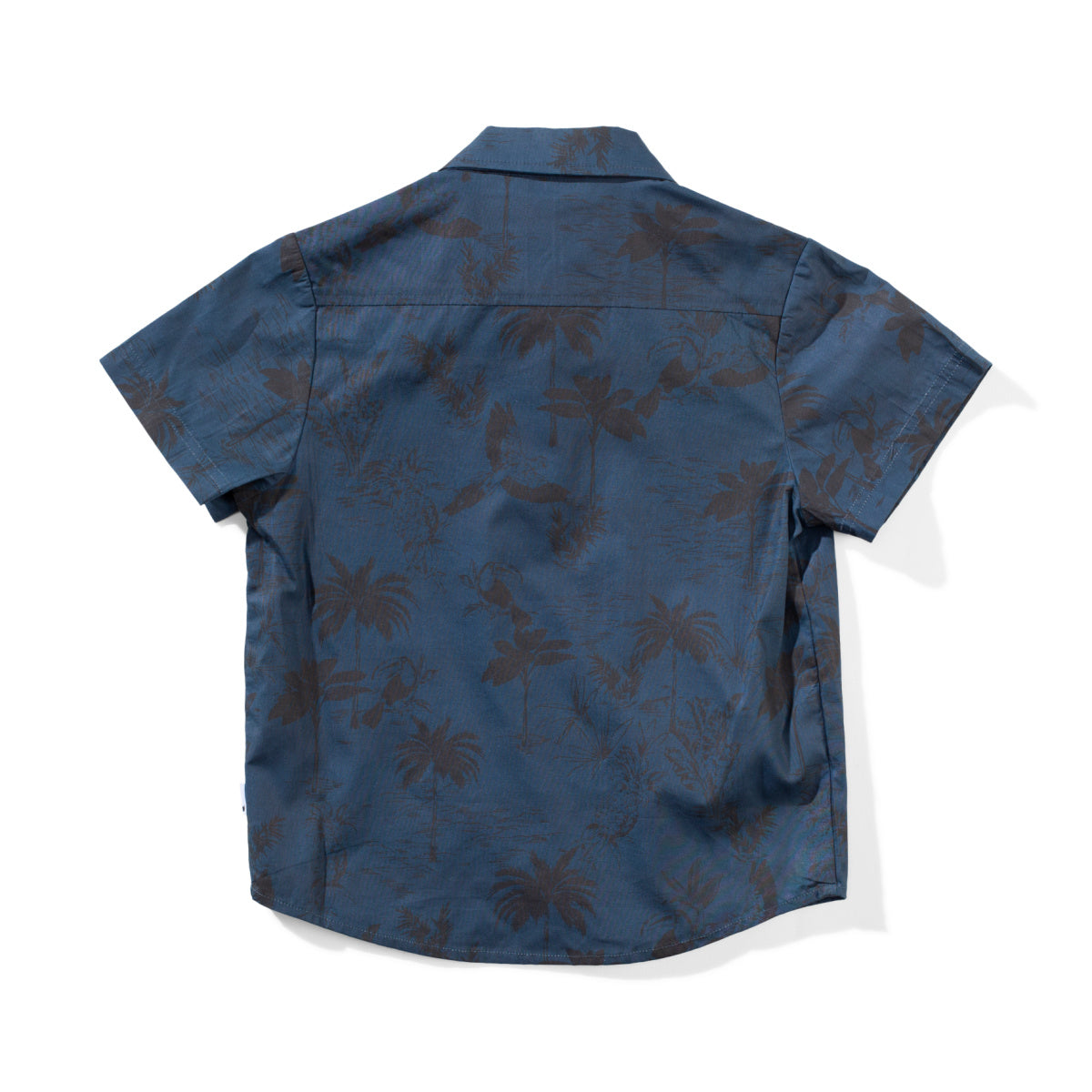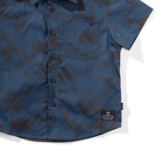 A rad take on the Hawaiian shirt, a little dressy - a lot cool.  This unique cotton button up shirt features an all over palm tree, birds, and floral print with a collar.