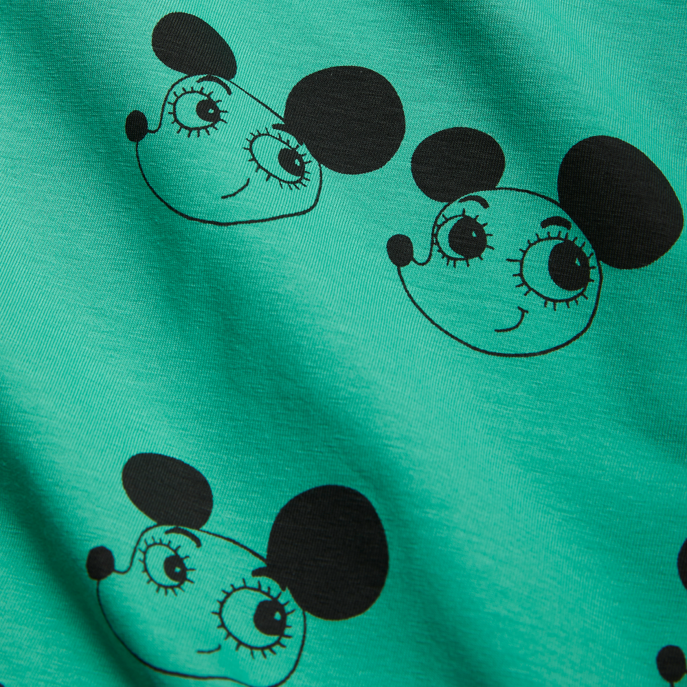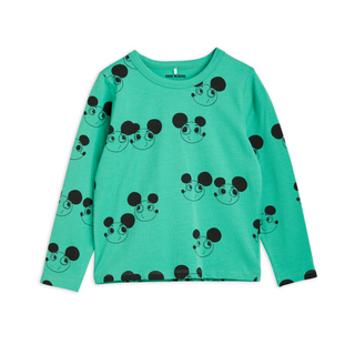 A playful all over mouse print on a green long sleeve super soft shirt! Designed for boys and girls alike!