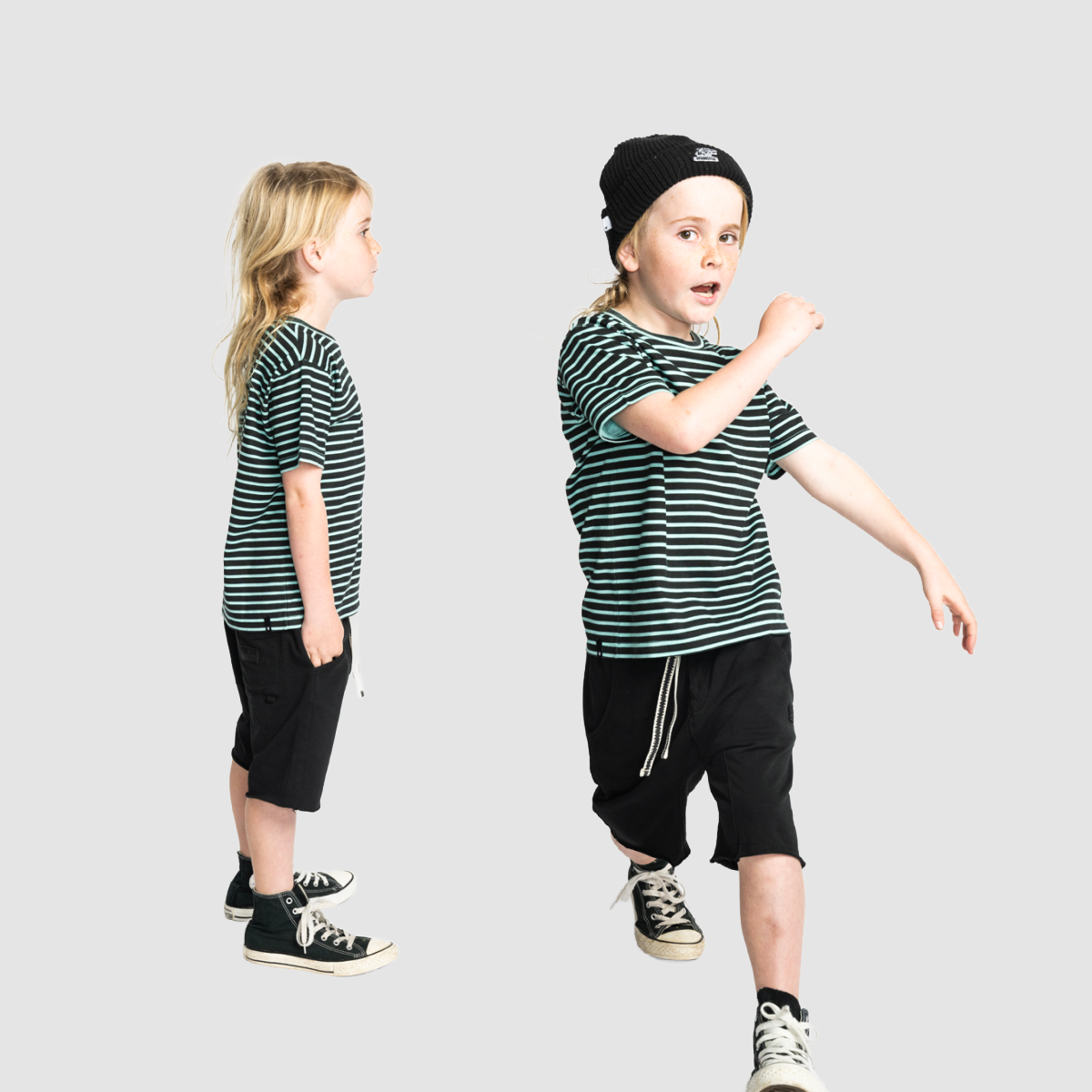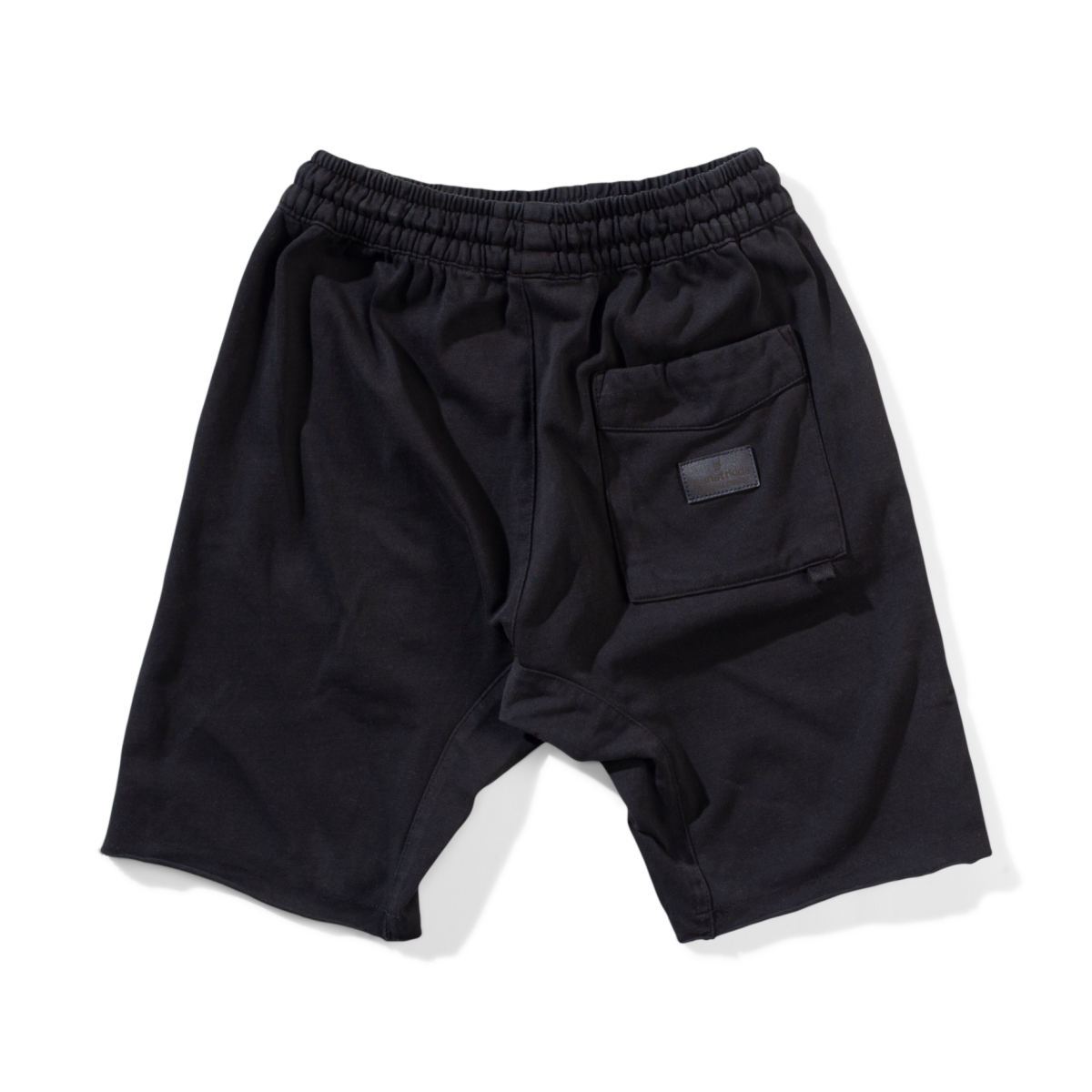 A comfortable and cool cotton track short featuring an elastic waistband, side and back pockets, and knee length design.