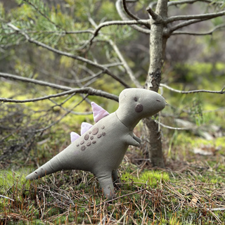 This adorable and happy T-Rex dinosaur toy is a perfect gift for all children, finished in natural linen fabrics of the highest quality. A cuddly soft toy is a beautiful addition to a nursery and also supports important language and story-telling development with children.