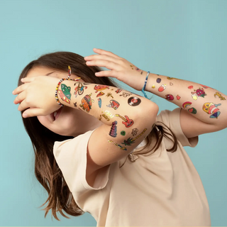 Inside this pack, discover 50 temporary tattoos in neon, golden, and colorful designs that can be applied anywhere all year round. In addition to being easy to use, these tattoos are durable and dermatologically tested