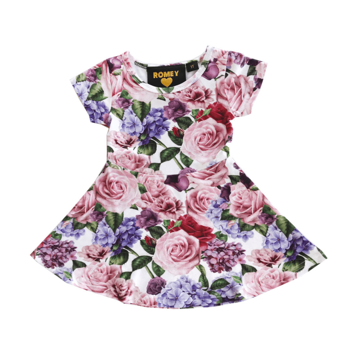 A rad all over rose print on an ultra soft skater style dress. Flirty, sweet and fun. A playful print for any garden party or add an rad pair of boots for an edgy pair.
