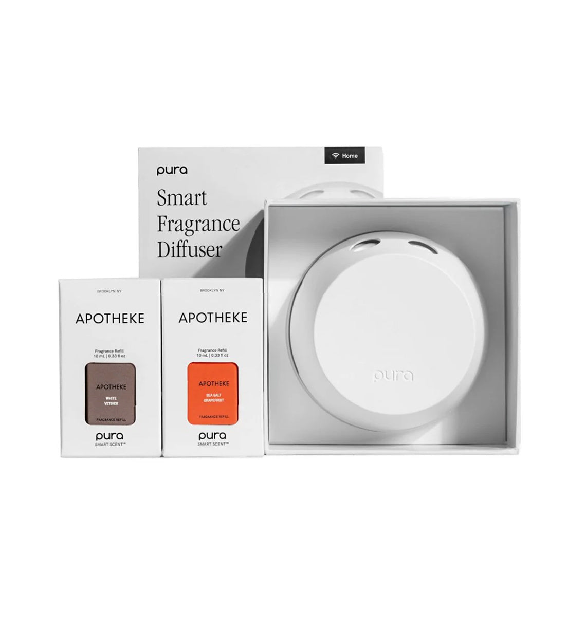 The power of fragrance in the palm of your hand. The Pura smart home fragrance diffuser uses smart technology to give you the most modern, customizable way to fragrance your space. Use your smartphone to control the time and intensity of the scent you want, from where ever you want. Adjust the fragrance intensity, set schedules and timers and more in the Pura app. To get you started, we're including one of each of our best selling scents