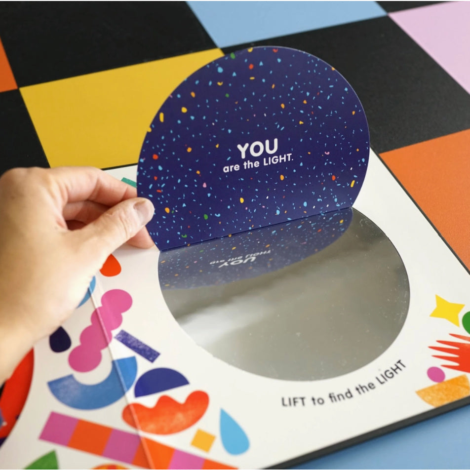 The self-love board book every child needs! THE LIGHT is an uplifting, vibrant and wonderfully surprising 18-page board book with tactile elements and a peek-a-boo surprise ending about listening to the light within… that is YOU.