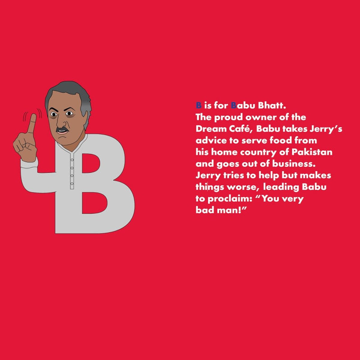 From Babu Bhatt to Elaine, Newman to Kramer, The Alphabet About Nothing reviews an unforgettable cast of characters encountered by Jerry and his gang on Seinfeld.
