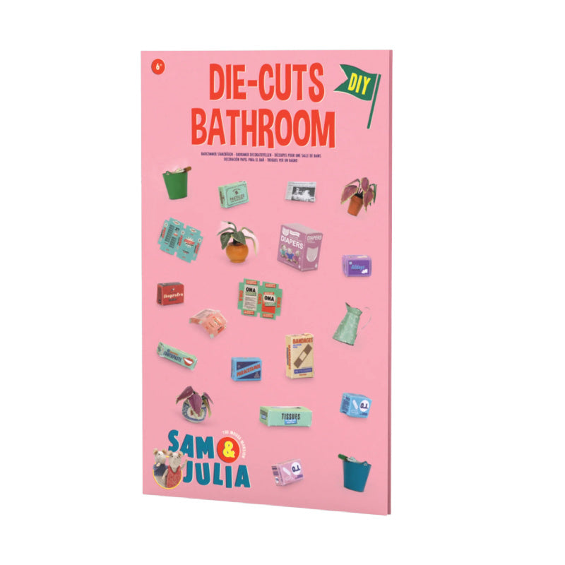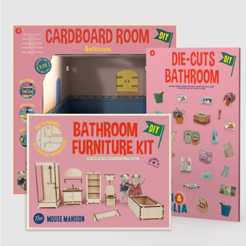 Little boxes, books, plants, and other miniature items are crafted from paper in the impressive Mouse Mansion. With these beautifully designed die-cuts, you can easily make them yourself. The set includes everything you need to decorate a bathroom with over 100 pieces!