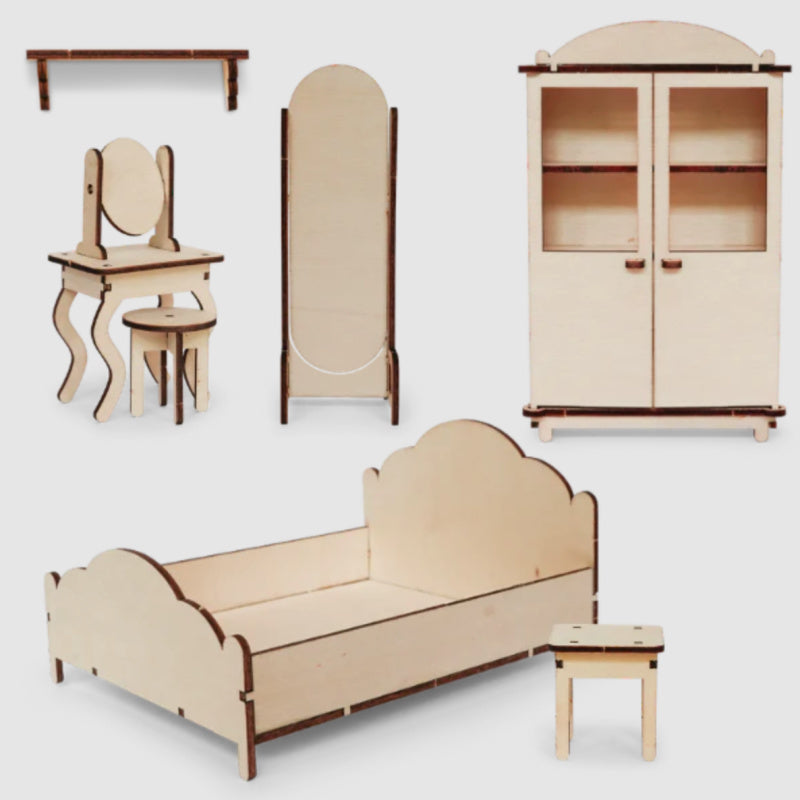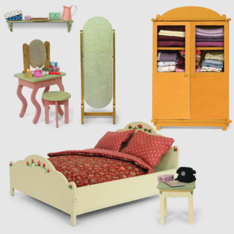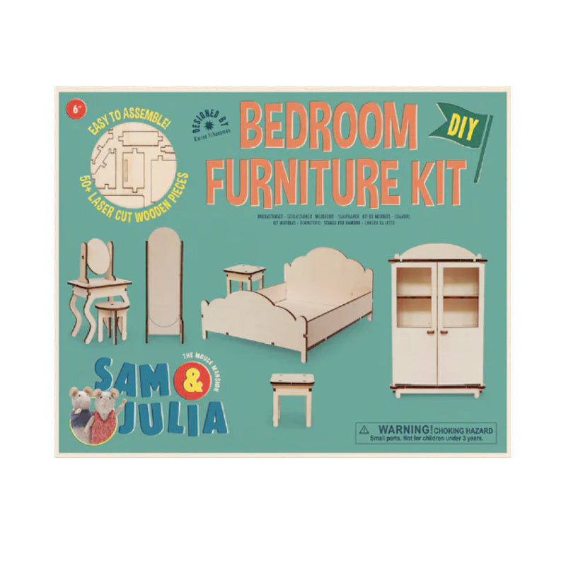 Create a mini master bedroom with this furniture kit! The pre-cut wooden pieces can be easily assembled with simple instructions and are 1:12 scale. Based on the Mouse Mansion book series by Karina Schaapman, the kit lets you bring the charming world of Sam and Julia to life. This furniture kit includes a bed, cabinet, dressing table, mirror and two bedside tables. Paint, glue, and accessories are sold separately.