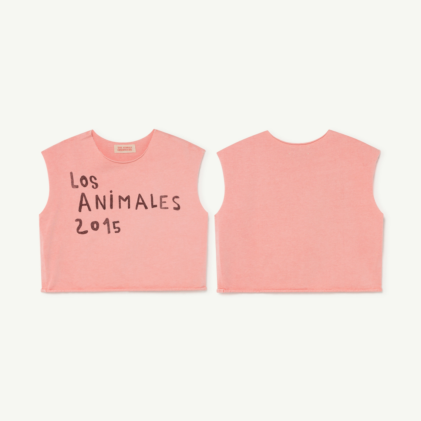 A rad crop top shirt featuring a light pink base, front text and rolled unfinished edges.