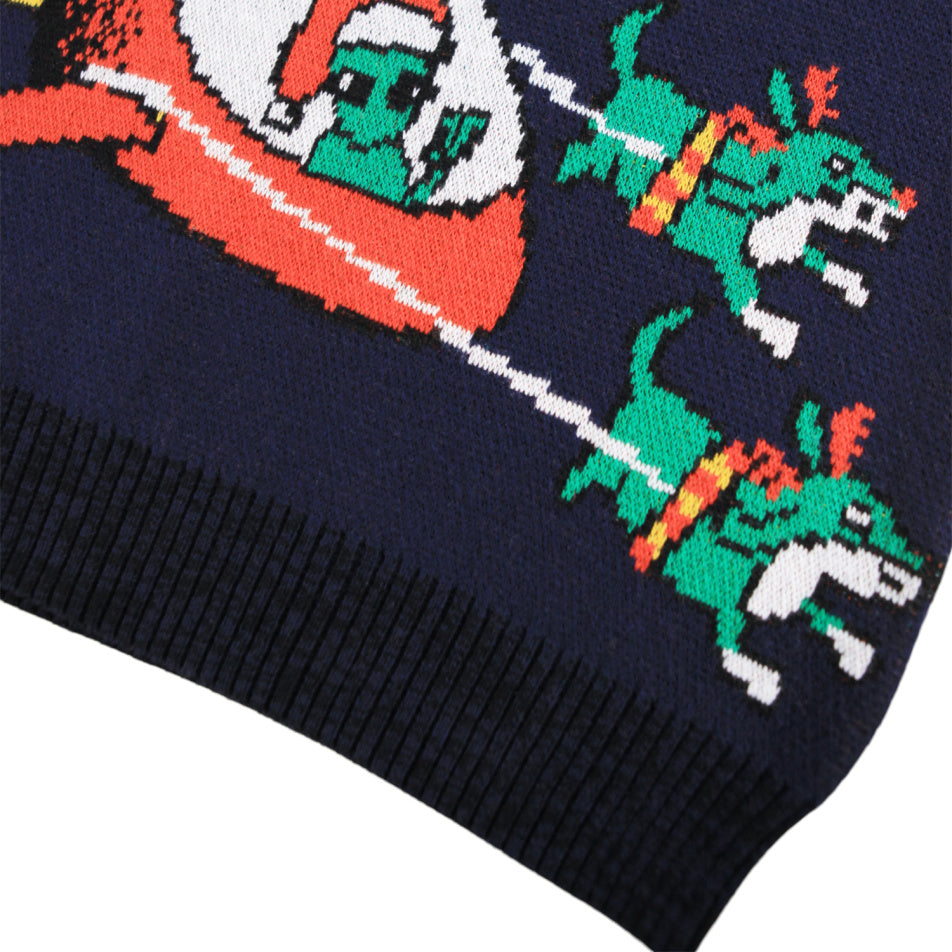 A super fun spaceship sleigh knit crewneck sweater for outer space lovers. When you're ready for the holidays, but you still want to have fun... this sweater is the one!