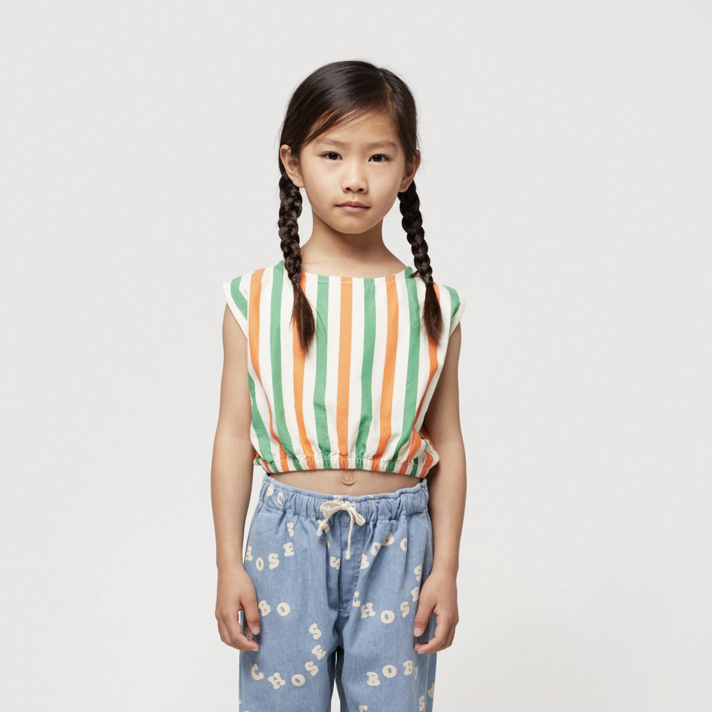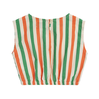 Designed with sleeveless, back button fastening, elasticated bottom, embroidery, loose fit, round neck and cropped length.