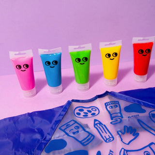 Discover your new favorite Finger Painting Kit, featuring 5 tubes of smooth and creamy water-based paints that are easy to handle and apply with your fingers.