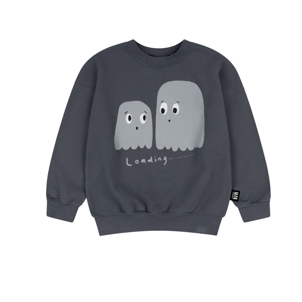 An oversized fit crewneck sweatshirt with a unique ghost print in organic cotton. High quality, designed to last with a unique flair for offbeat design mixed with surreal streetwear. Every LMH piece is made to clash, layer, and play-hard.