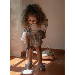 An adorable play vacuum cleaner toy with an all over cherry print. Teach your little ones how to help out around the house with this pretend play piece!