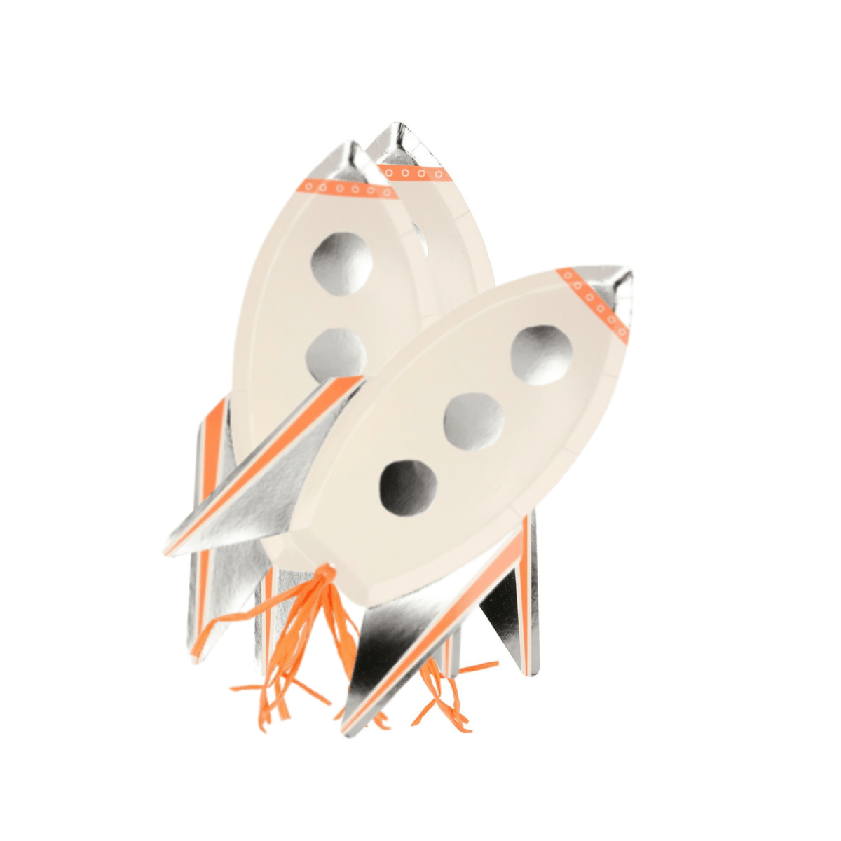 These fabulous rocket plates are an amazing way to decorate a space party table to delight little astronauts. They are crafted from high quality card, so are perfect to heap with space treats too.