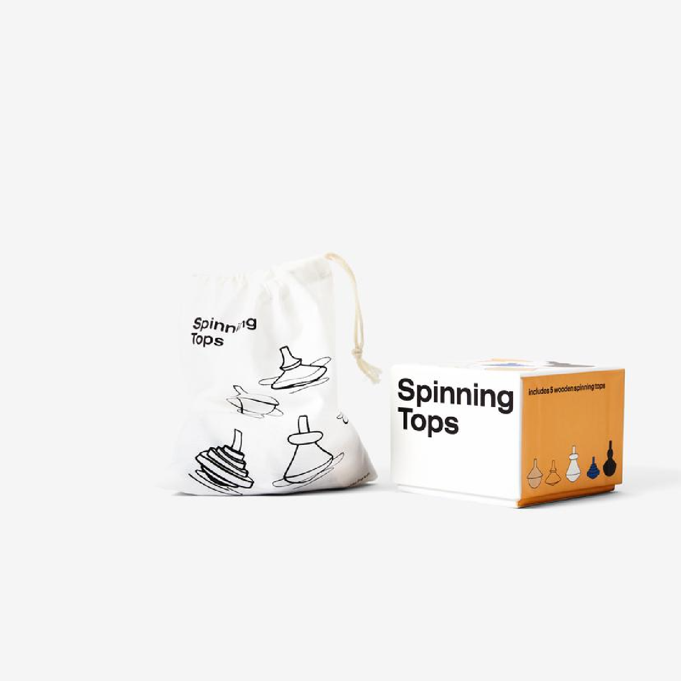 This set of five tops is a fun reflection of artist, Pat Kim's broader studio practice, which focuses on material experimentation and traditional craft. Keep them spinning and admire them resting nearby.