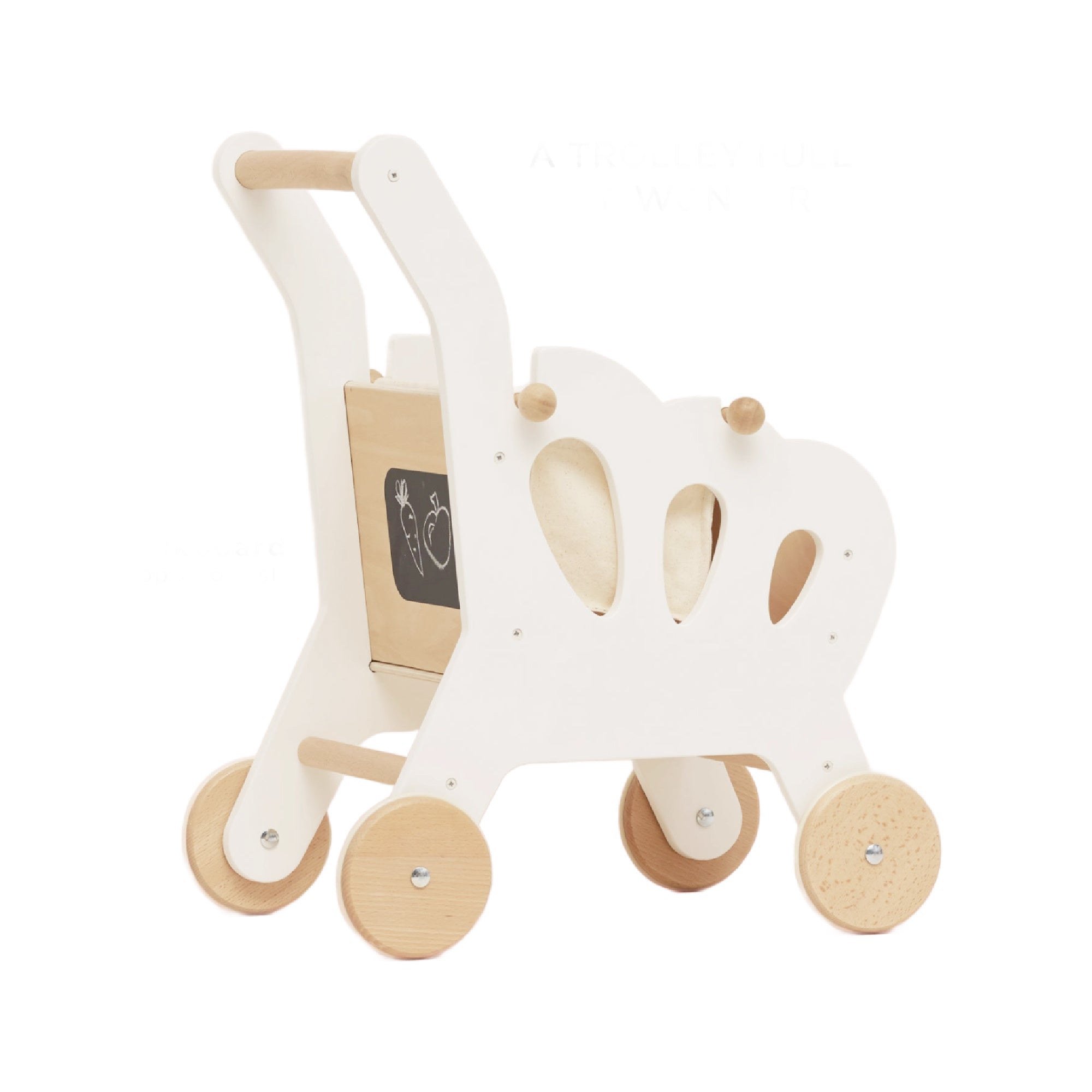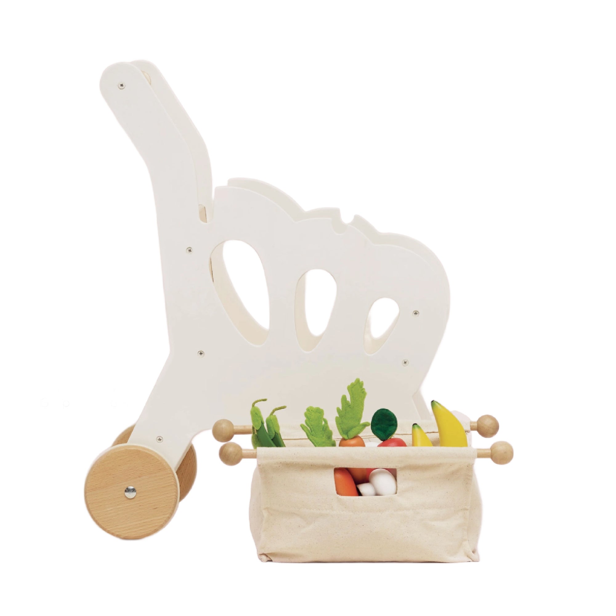 This super stylish wooden shopping cart is ready all their mini food adventures and includes interactive features such as a chalkboard back for shopping lists and detachable, reusable fabric bag! Complete with 2 internal compartments and a handy fabric storage level underneath, little ones are all set and raring to hit the supermarket. This interactive shopping cart is packed full of fun.