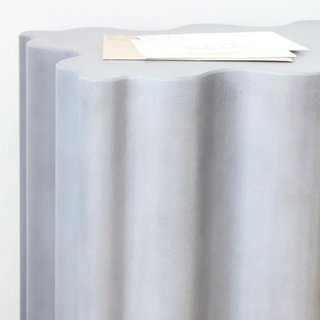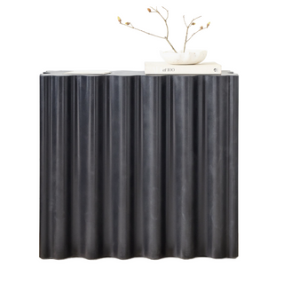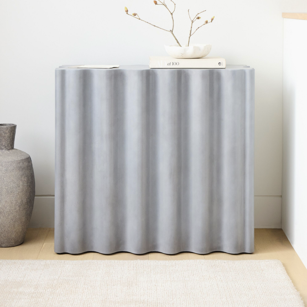 Organic scalloped edge brutalist entry or console table that's good for interior or exterior use. A stunning contract-grade piece that meets commercial demands as well as residential. Features adjustable plastic levelers so the concrete never actually touches the ground and can easily be moved/slid across floors without the risk of scratches.