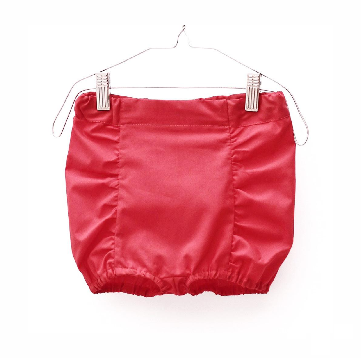 Adorable baby bloomer with ruffle detail on front. Features a high waist and cinched leg openings.