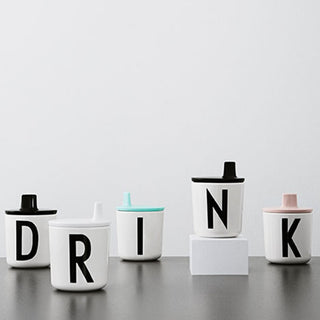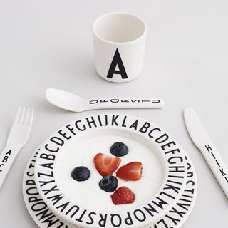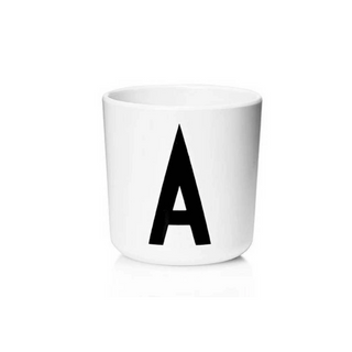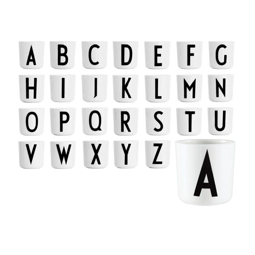 An iconic design from Denmark based on 1937 Arne Jacobsen Typography. Designed for the interior signage for the Aarhus City Hall, this angular, vertical and precise font was radically new in the pre-war years and still expresses the essence of Nordic modernism. A-Z letters adorn kid friendly melamine cups for drinking or decorating your favorite space.