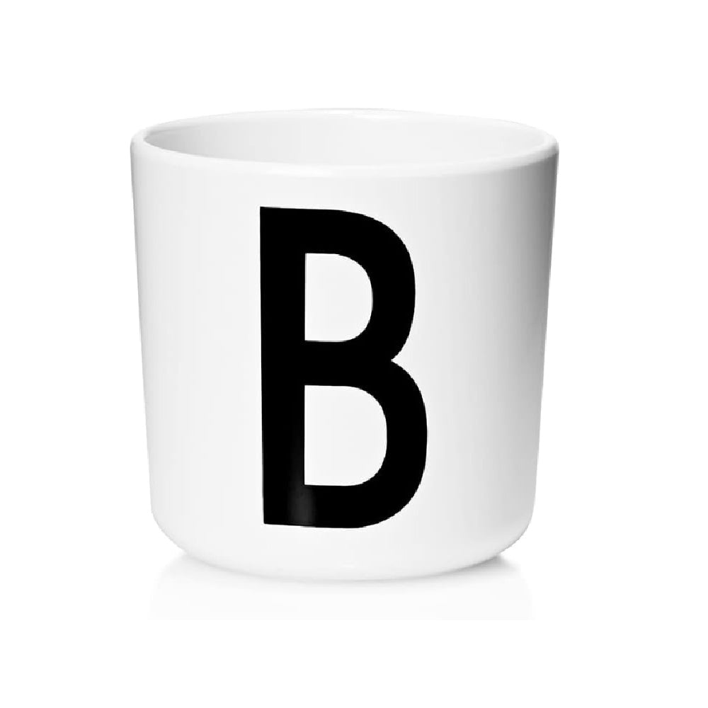 An iconic design from Denmark based on 1937 Arne Jacobsen Typography. Designed for the interior signage for the Aarhus City Hall, this angular, vertical and precise font was radically new in the pre-war years and still expresses the essence of Nordic modernism. A-Z letters adorn kid friendly melamine cups for drinking or decorating your favorite space.