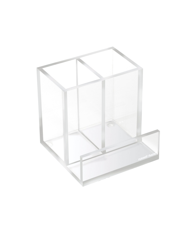 This acrylic desk block functions as both a pencil sorter card holder. Use it in the kitchen, office, bathroom.. anywhere you choose. It's streamlined design allows you to beautifully display and effortlessly organize your work. Classic, modern and perfect for all design aesthetics.