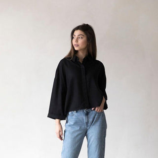 Modern, simple, sleek and comfortable. Loose-fitting T-shirt with wide mid length sleeves and a round neckline