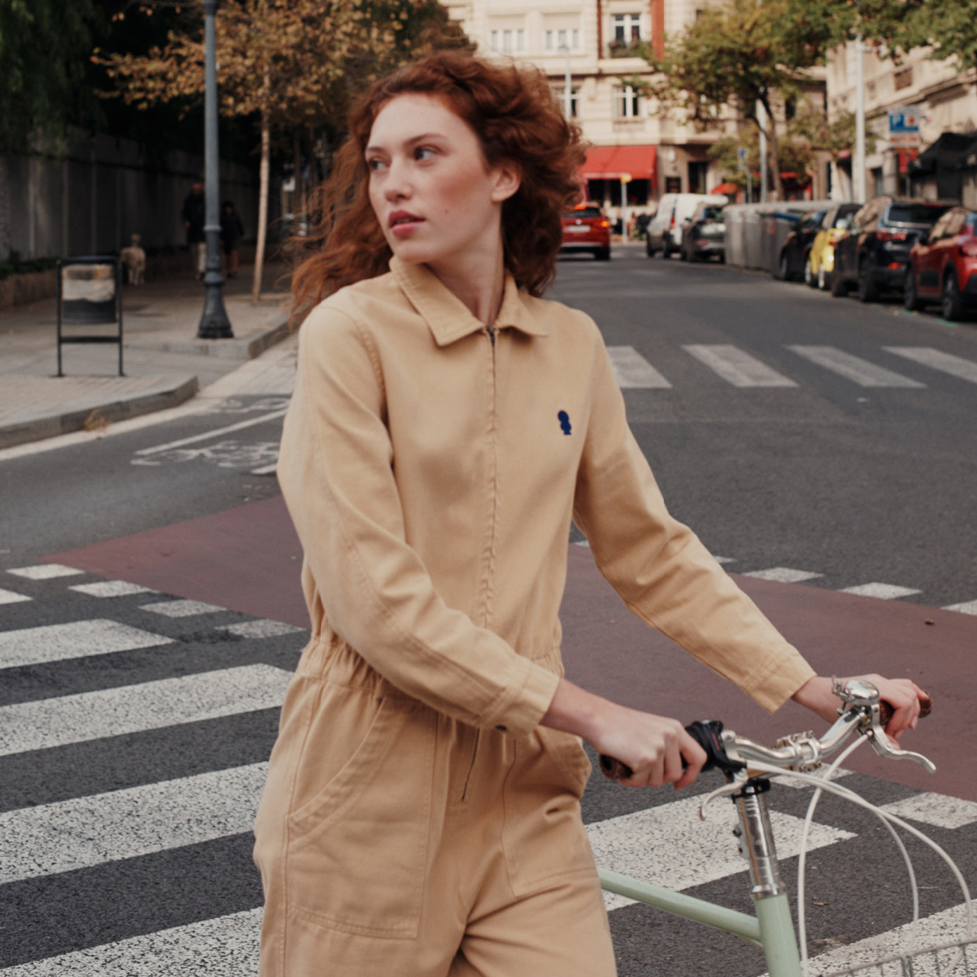 A rad one piece jumpsuit for women designed with a zipper front, pockets and a relaxed fit.
