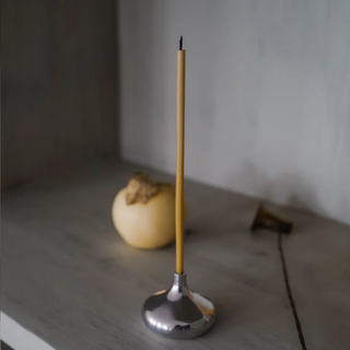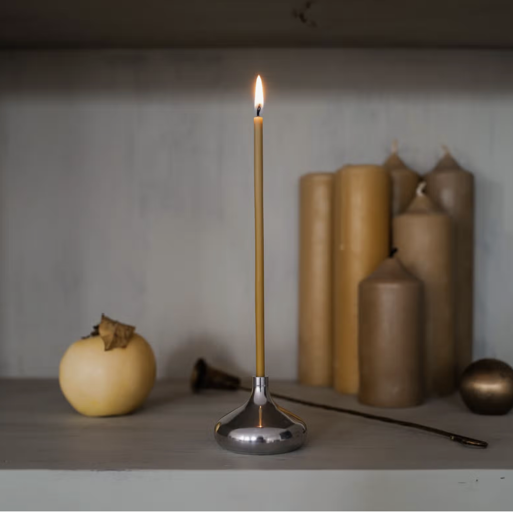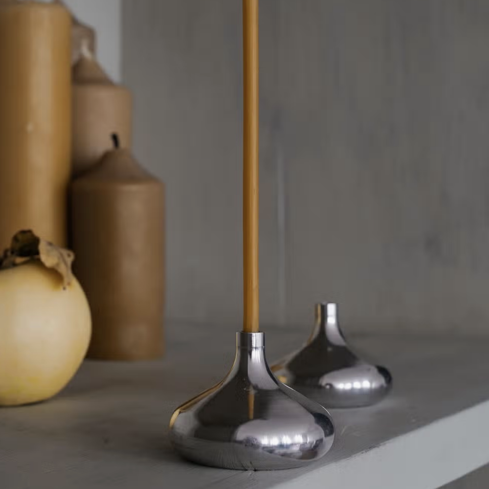 Turned in a small workshop this item is a metal version of our Oak Candle Holder, complementing the range of OVO Things' candle stick holders.  Aluminum Candle Holder makes a great contrast to warm and soft nature of beeswax or table linens. Play this theme while setting a table or any corner of your preloved collectibles at home.  Designed to fit slim, birthday OVO Things candles. > HERE