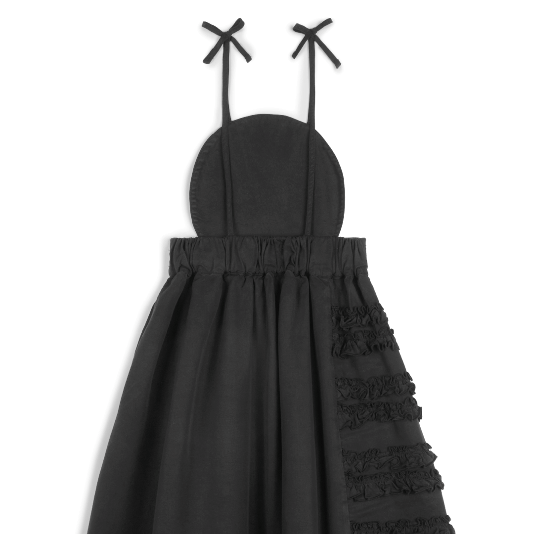Rock it solo or  layer it with your favorite tanks and tees for a unique look. A beautiful garment dyed, long, sleeveless dress with open back and adjustable thin straps, elastic waist and frill details on skirt.