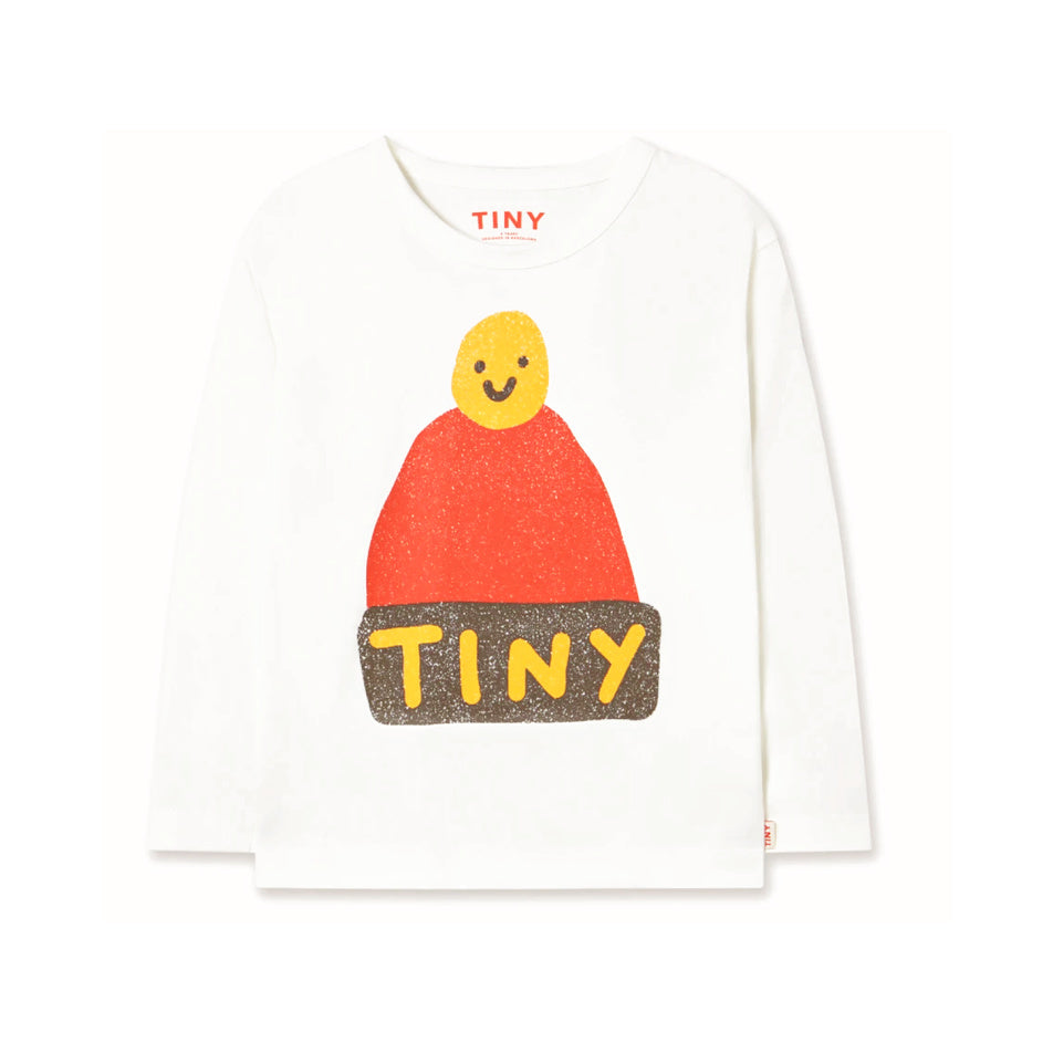A long sleeve tee featuring a happy face beanie hat crafted from 100% organic cotton. It features a relaxed silhouette with a round neck and long sleeves. It offers both style and comfort with a clear focus on quality. Perfect for everyday wear.