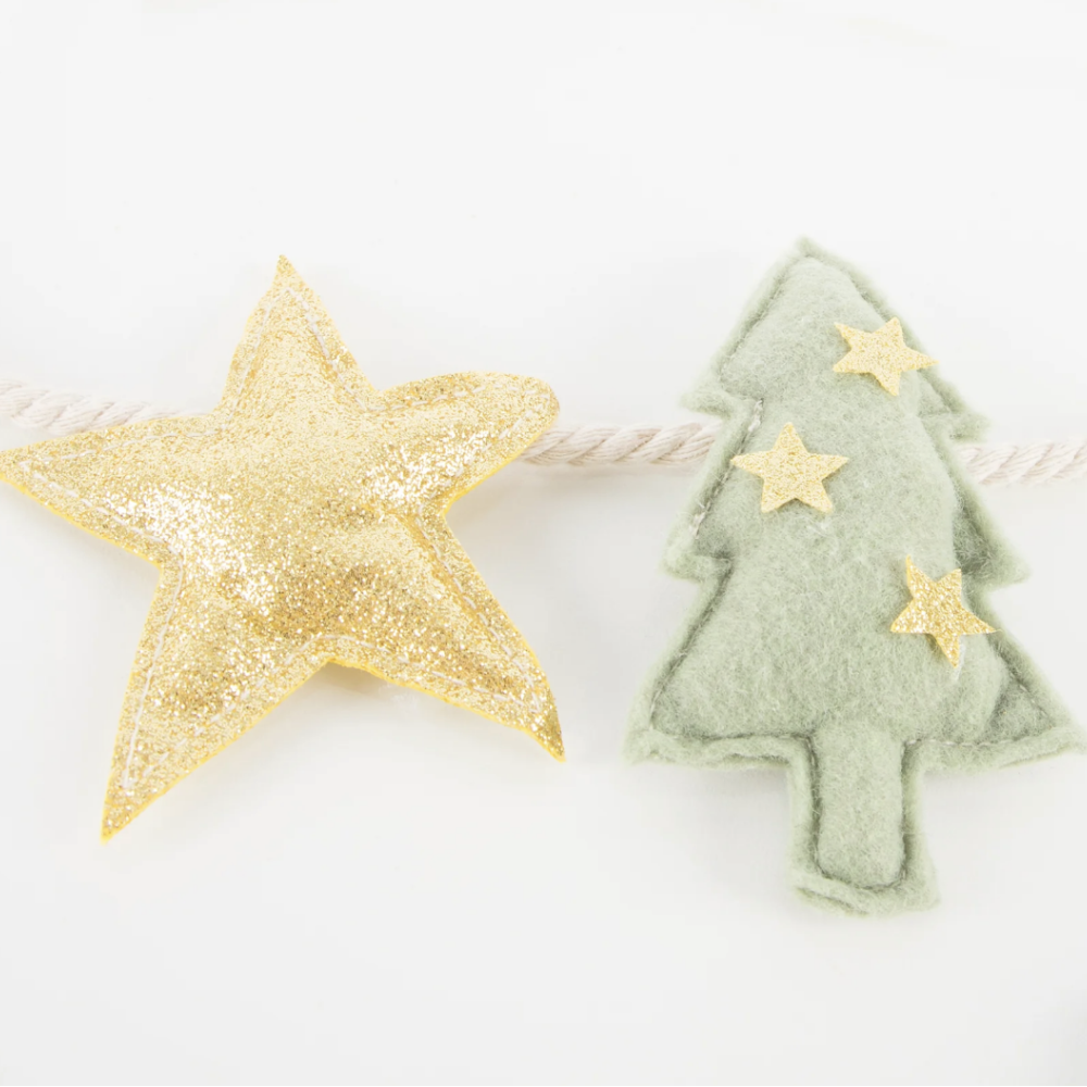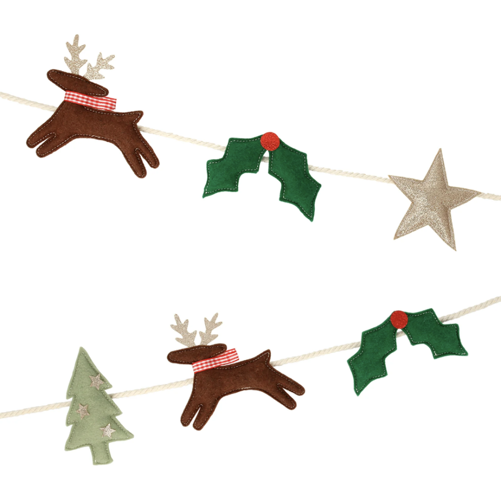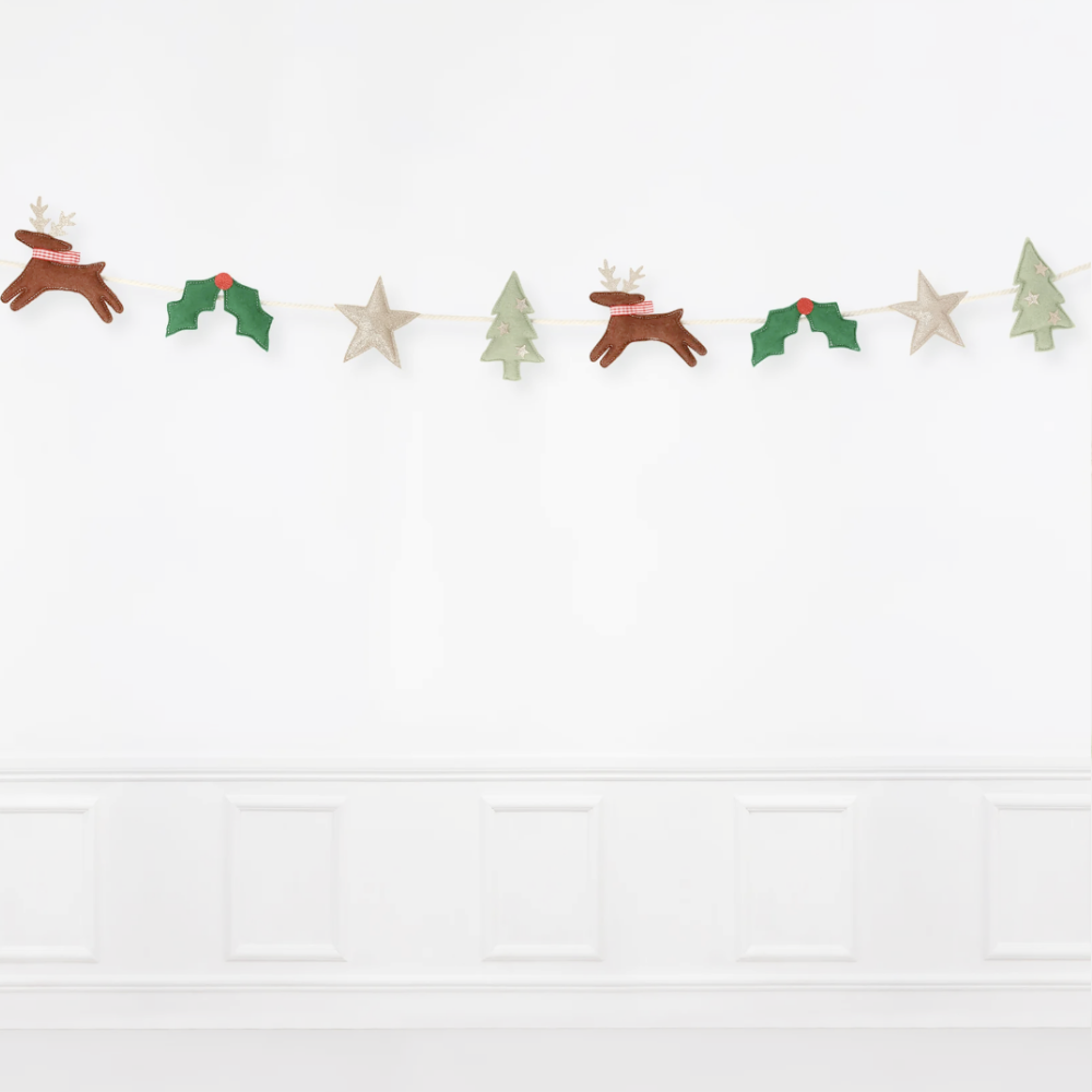 This gorgeous garland, crafted from embellished felt, will instantly make your room look festive fantastic. It features reindeer, holly, stars and Christmas trees, all lightly filled for a 3D effect. It comes presented in an beautiful gift bag, perfect for storage.