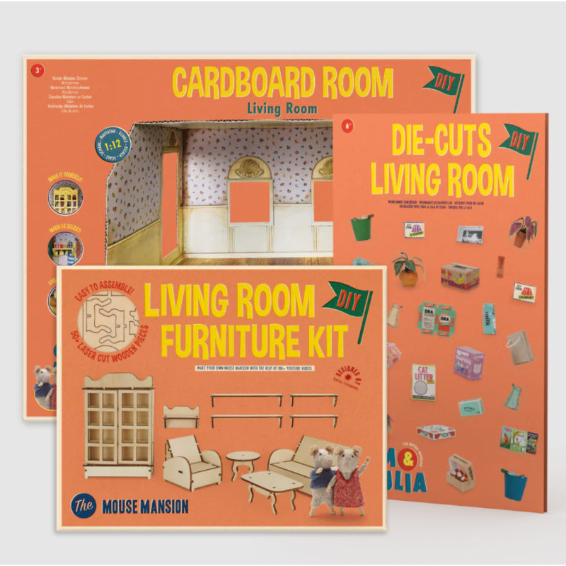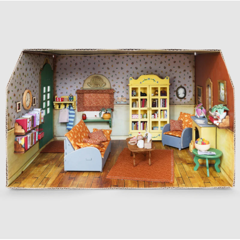 Little boxes, books, plants, and other miniature items are crafted from paper in the impressive Mouse Mansion. With these beautifully designed die-cuts, you can easily make them yourself. The set includes everything you need to decorate a living room with more than 100 items!