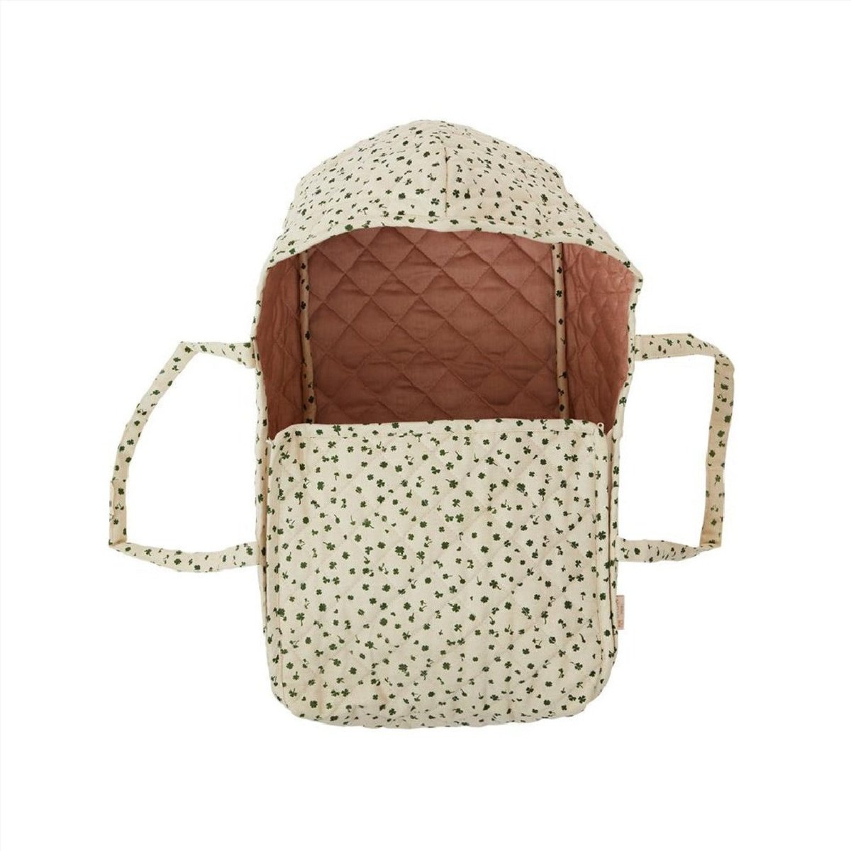 An adorable doll carrier that features an all over woodland leaf print. Now it is easy to get around with your best friends in a safe way. Every child will love to use this chic doll carrier for their favorite friends and teddy bears. The lift is closed with a zipper.